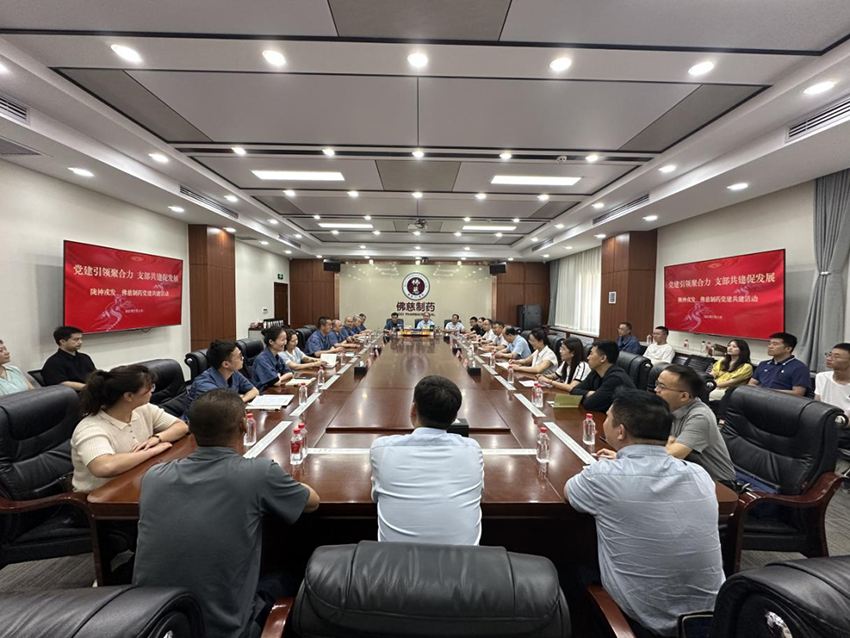 7月11日,為了強(qiáng)化黨建對(duì)企業(yè)發(fā)展的引領(lǐng)作用,推動(dòng)醫(yī)藥行業(yè)黨建工作與產(chǎn)業(yè)發(fā)展深度融合,隴神戎發(fā)與佛慈制藥聯(lián)合開(kāi)展“黨建引領(lǐng)聚合力?支部共建促發(fā)展”活動(dòng)。隴神戎發(fā)黨委委員、董事、副總經(jīng)理、董事會(huì)秘書元勤輝,黨委委員、紀(jì)委書記楊俊萍帶隊(duì)參與,佛慈集團(tuán)黨委委員,佛慈制藥黨委副書記、總經(jīng)理錢雙喜,佛慈集團(tuán)黨委委員、副總經(jīng)理王新海陪同參加。