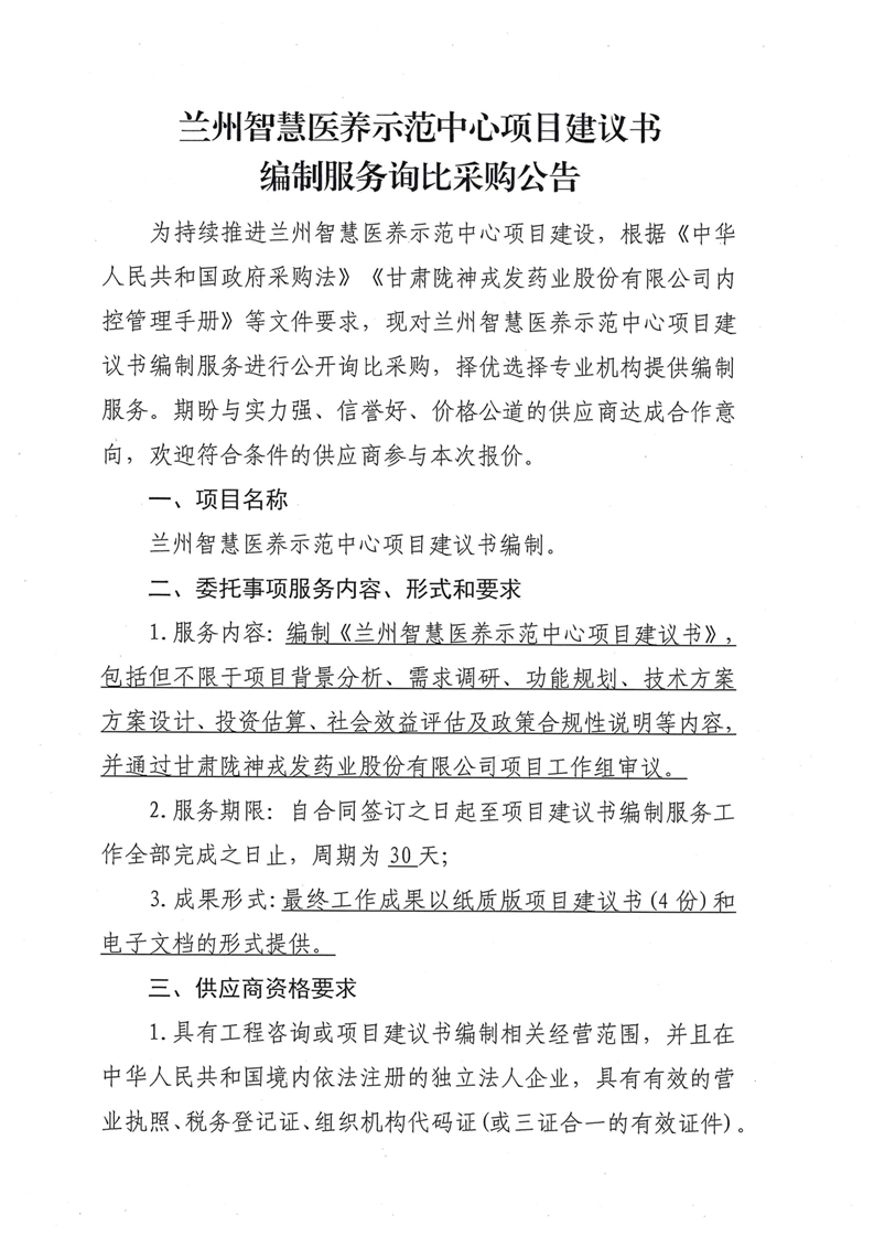 蘭州智慧醫(yī)養(yǎng)示范中心項(xiàng)目建議書(shū)編制服務(wù)詢比采購(gòu)公告