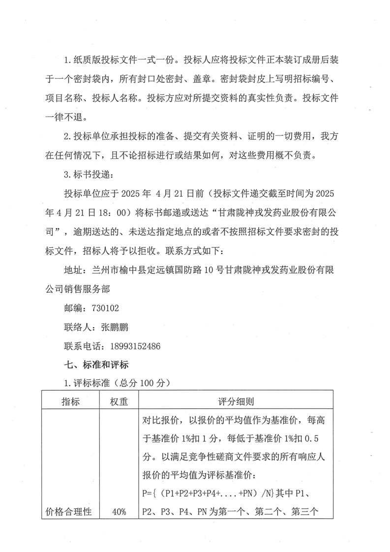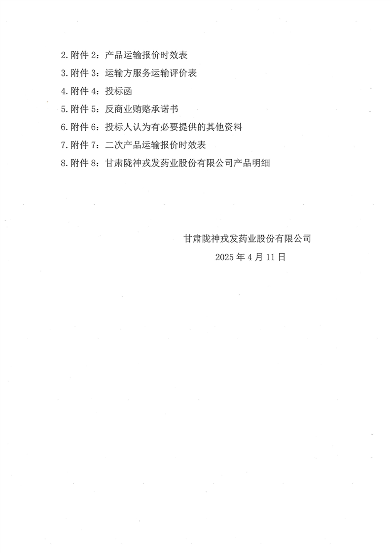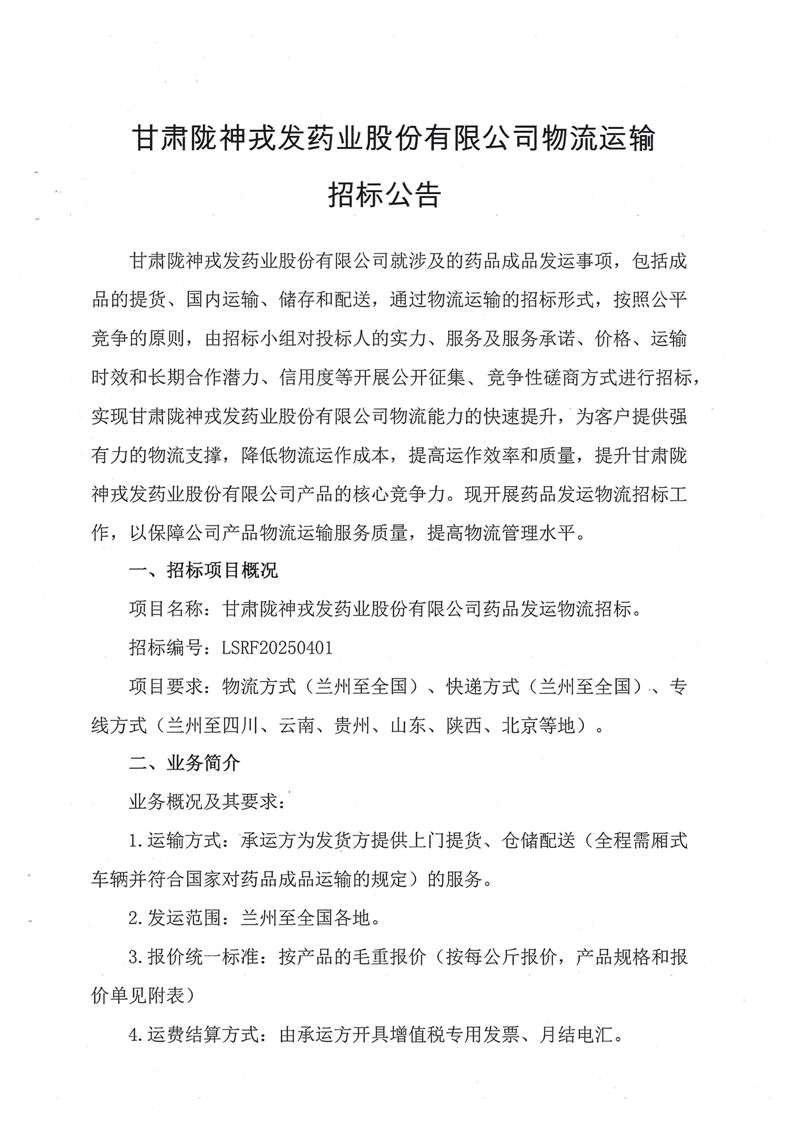 甘肅隴神戎發(fā)藥業(yè)股份有限公司物流運輸招標(biāo)公告