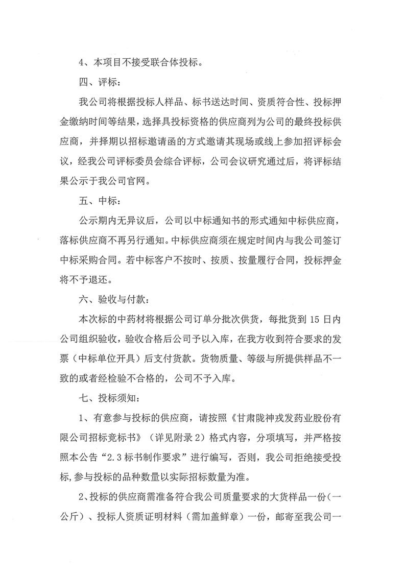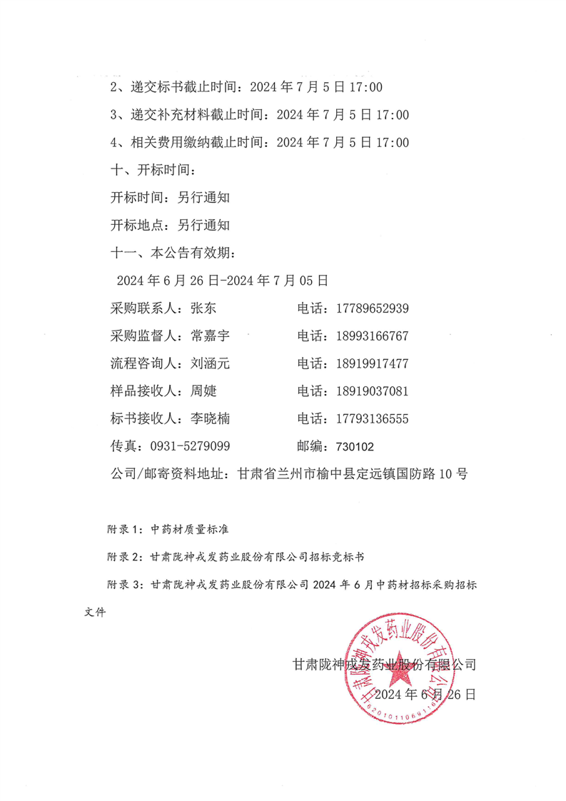 甘肅隴神戎發(fā)藥業(yè)股份有限公司2024年6月中藥材采購(gòu)公告