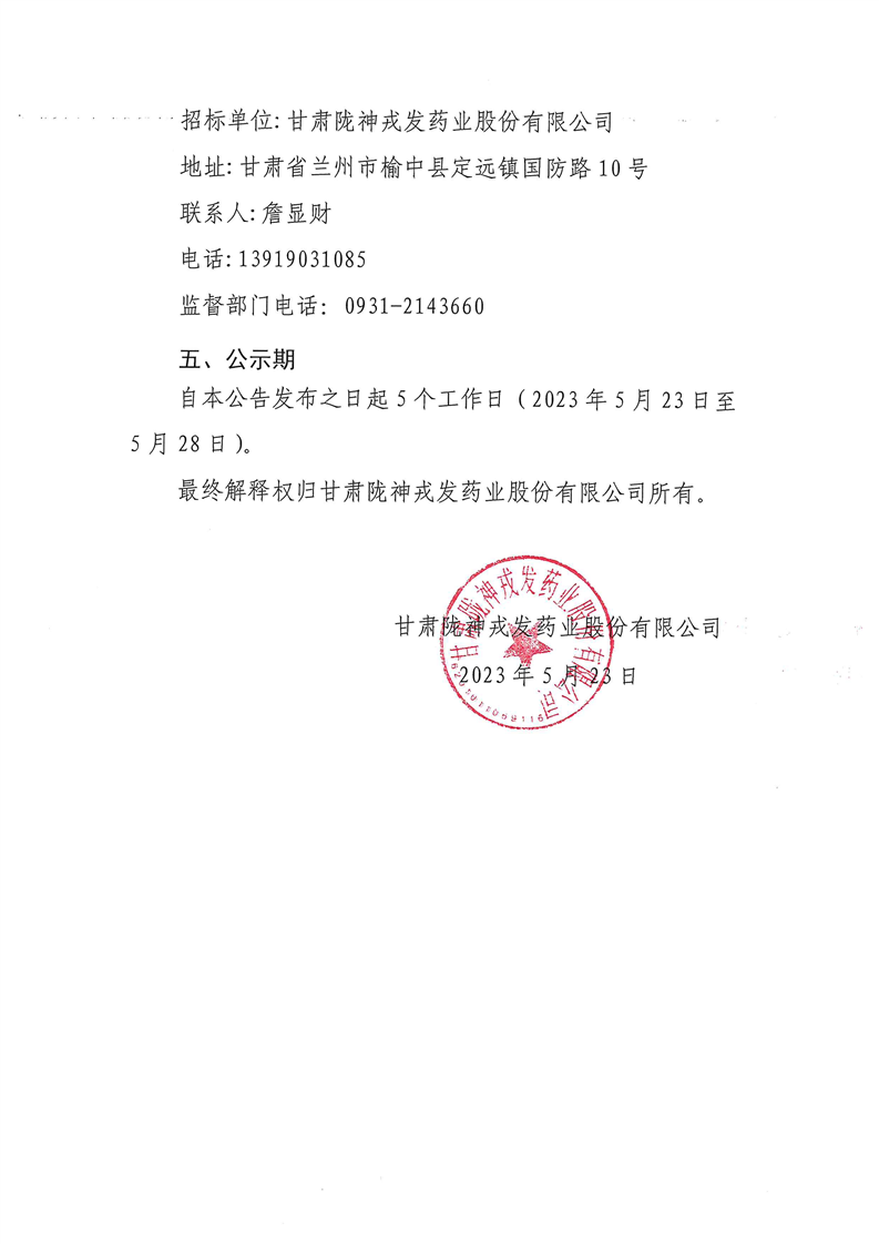 甘肅隴神戎發(fā)藥業(yè)股份有限公司購買職工通勤車競爭性談判公告評標結(jié)果公示