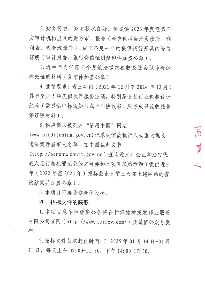 甘肅隴神戎發(fā)藥業(yè)股份有限公司產(chǎn)品包裝設(shè)計(jì)項(xiàng)目競(jìng)爭(zhēng)性磋商公告