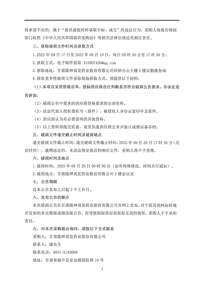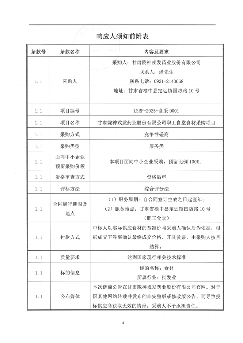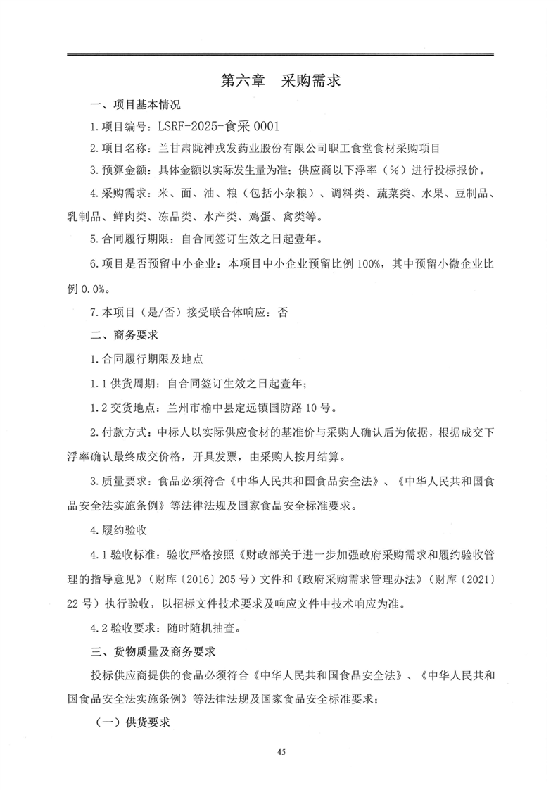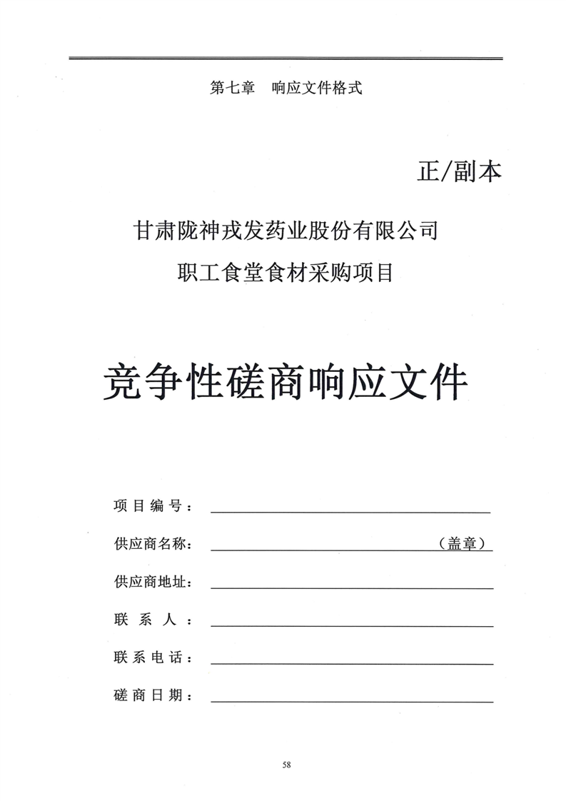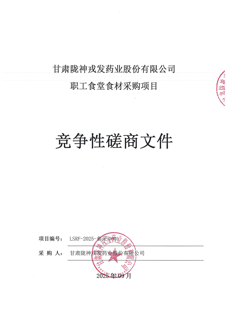 甘肅隴神戎發(fā)藥業(yè)股份有限公司職工食堂食材采購項目競爭性磋商文件