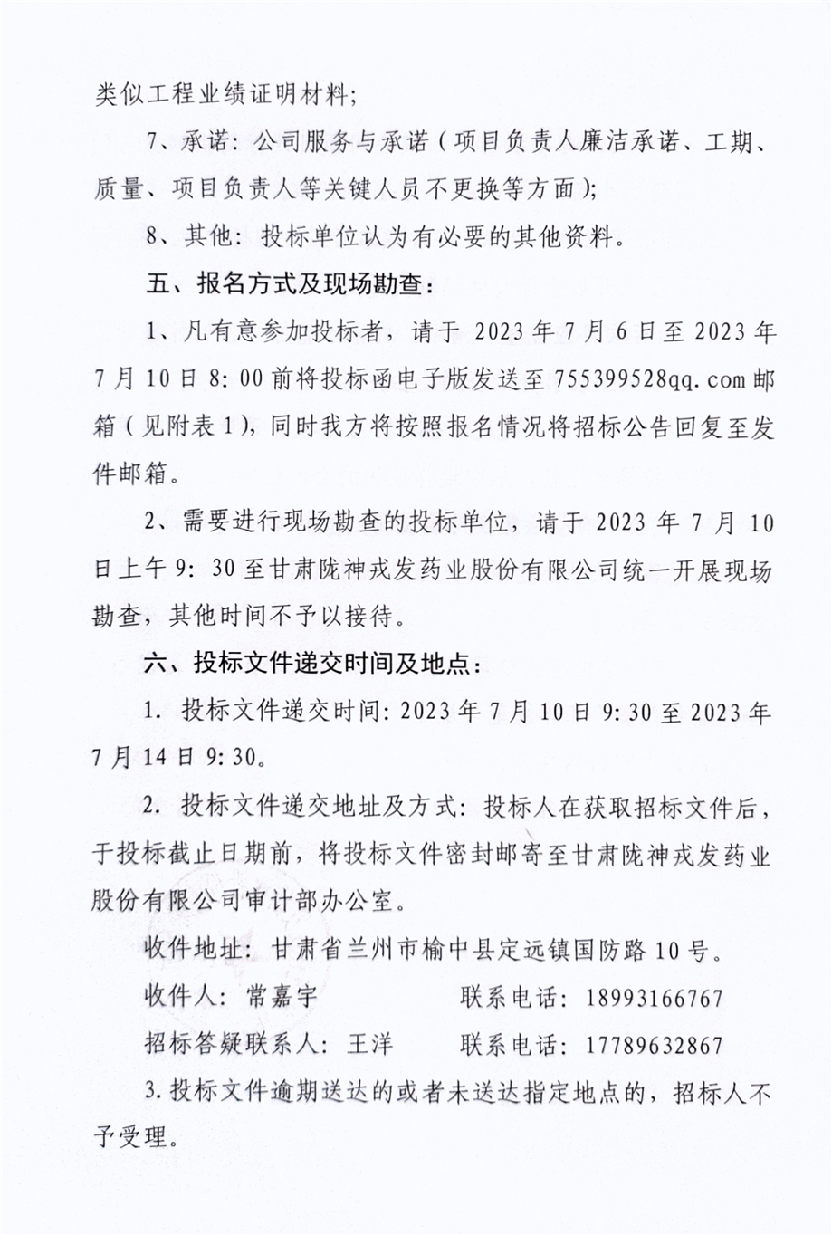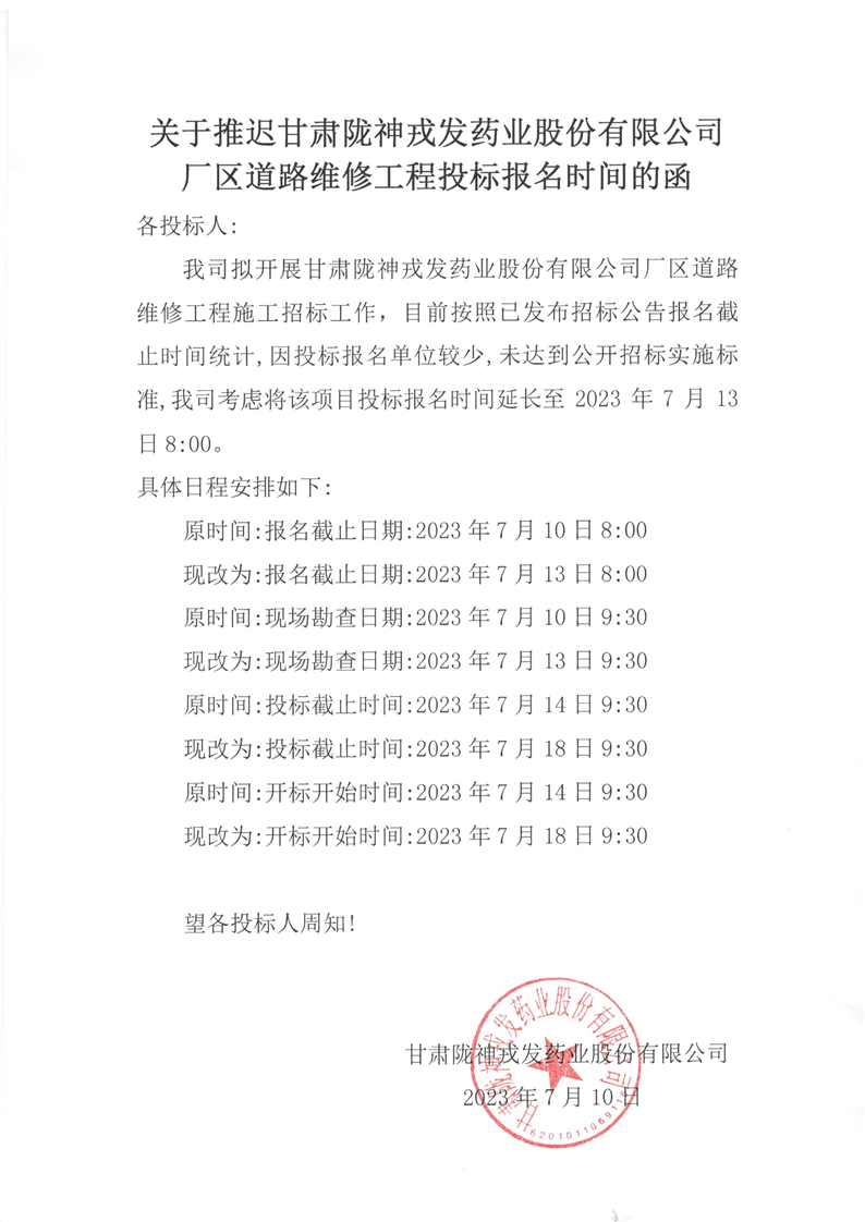 甘肅隴神戎發(fā)藥業(yè)股份有限公司廠區(qū)道路維修工程招標(biāo)公告