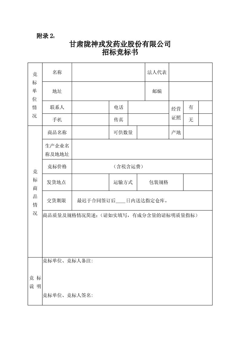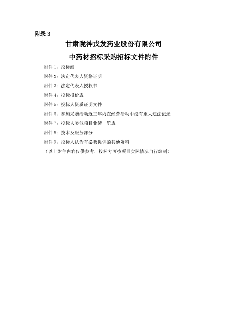 甘肅隴神戎發(fā)白芷招標(biāo)公告方案