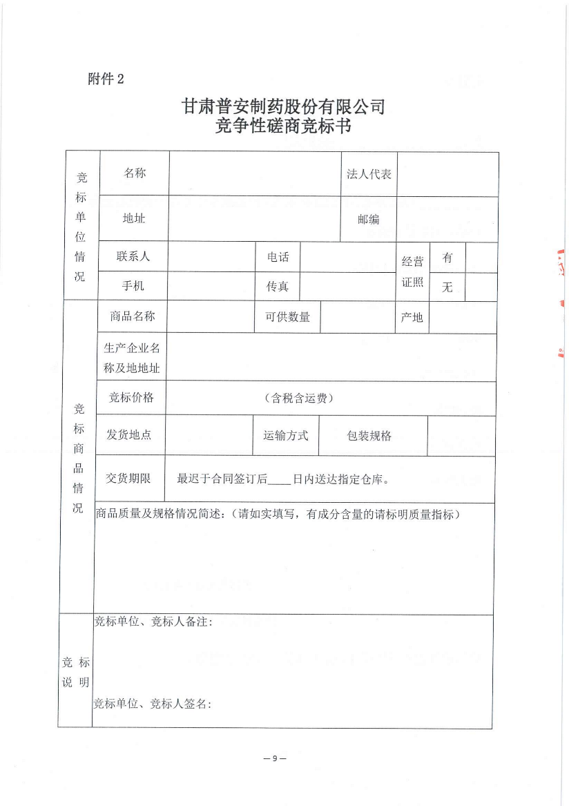 甘肅普安制藥股份有限公司2023年第二次燃煤采購(gòu)競(jìng)爭(zhēng)性磋商公告