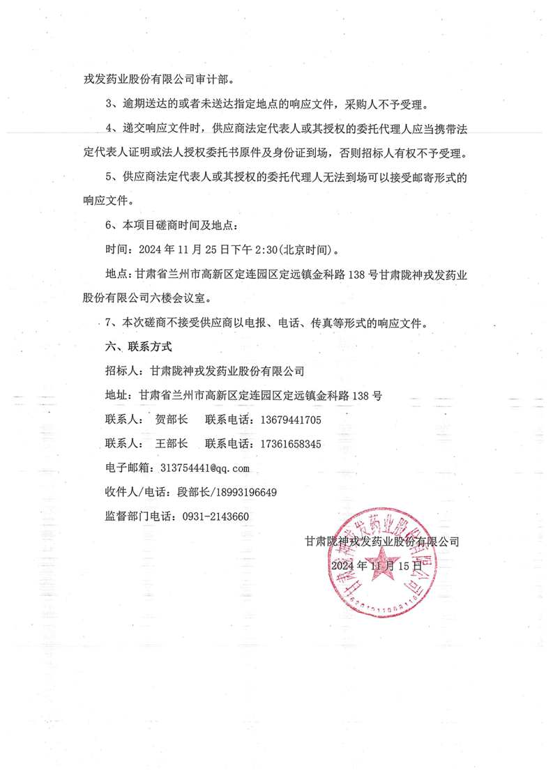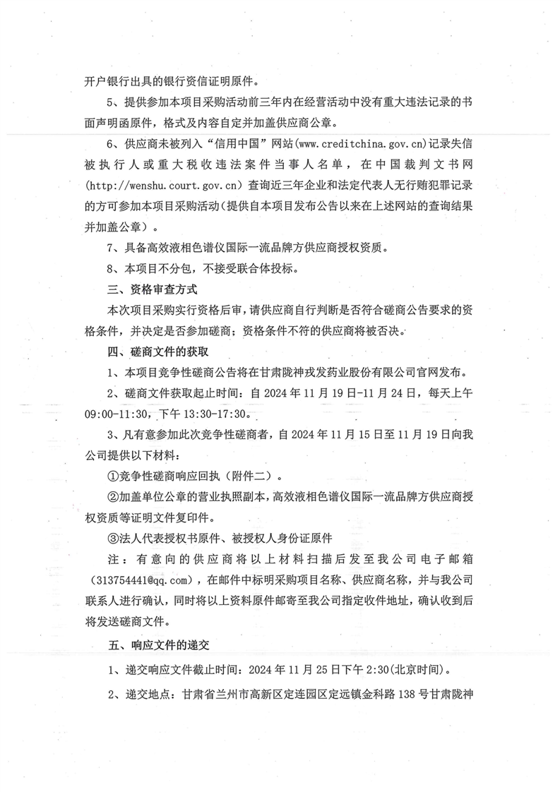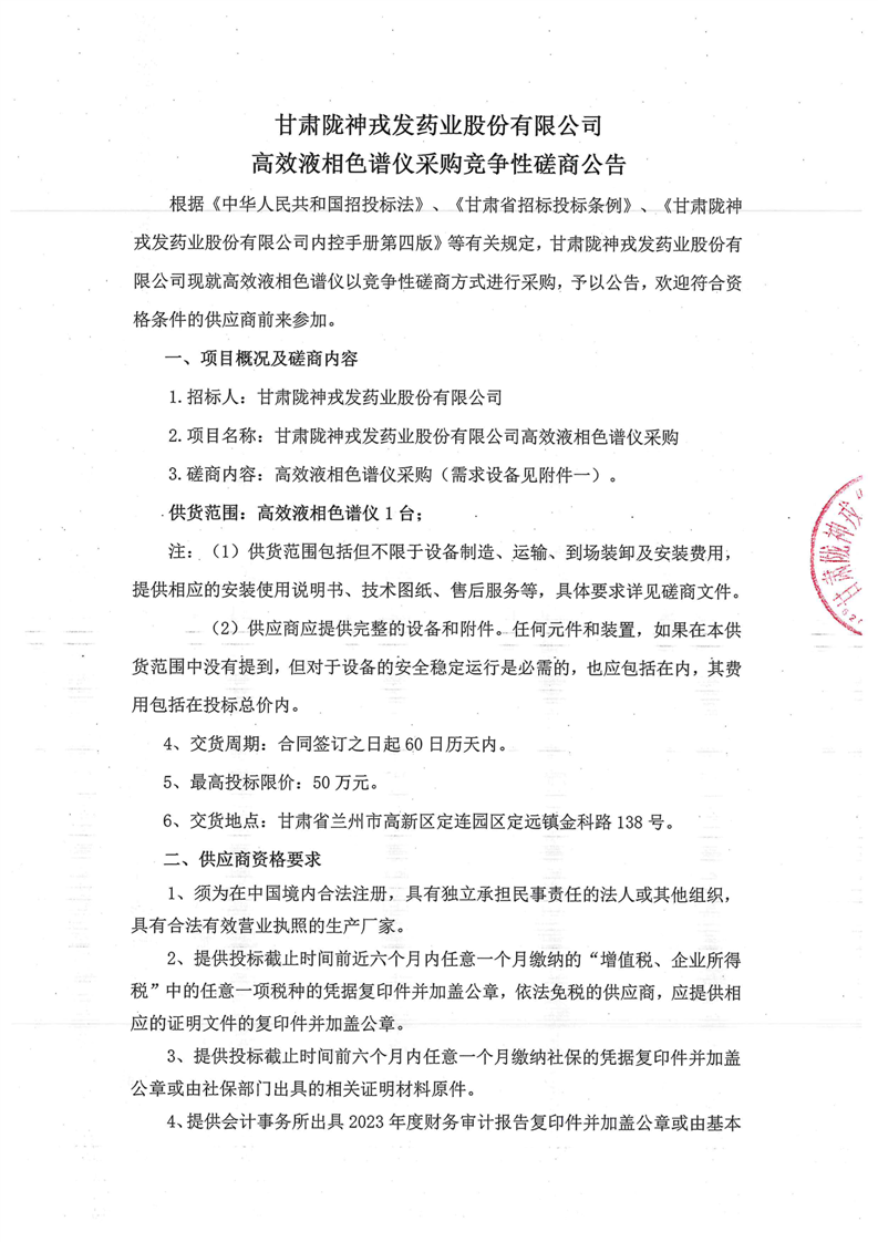 甘肅隴神戎發(fā)藥業(yè)股份有限公司高效液相色譜儀采購競爭性磋商公告