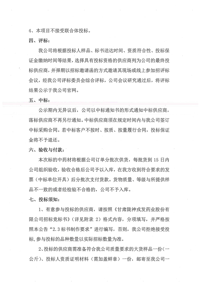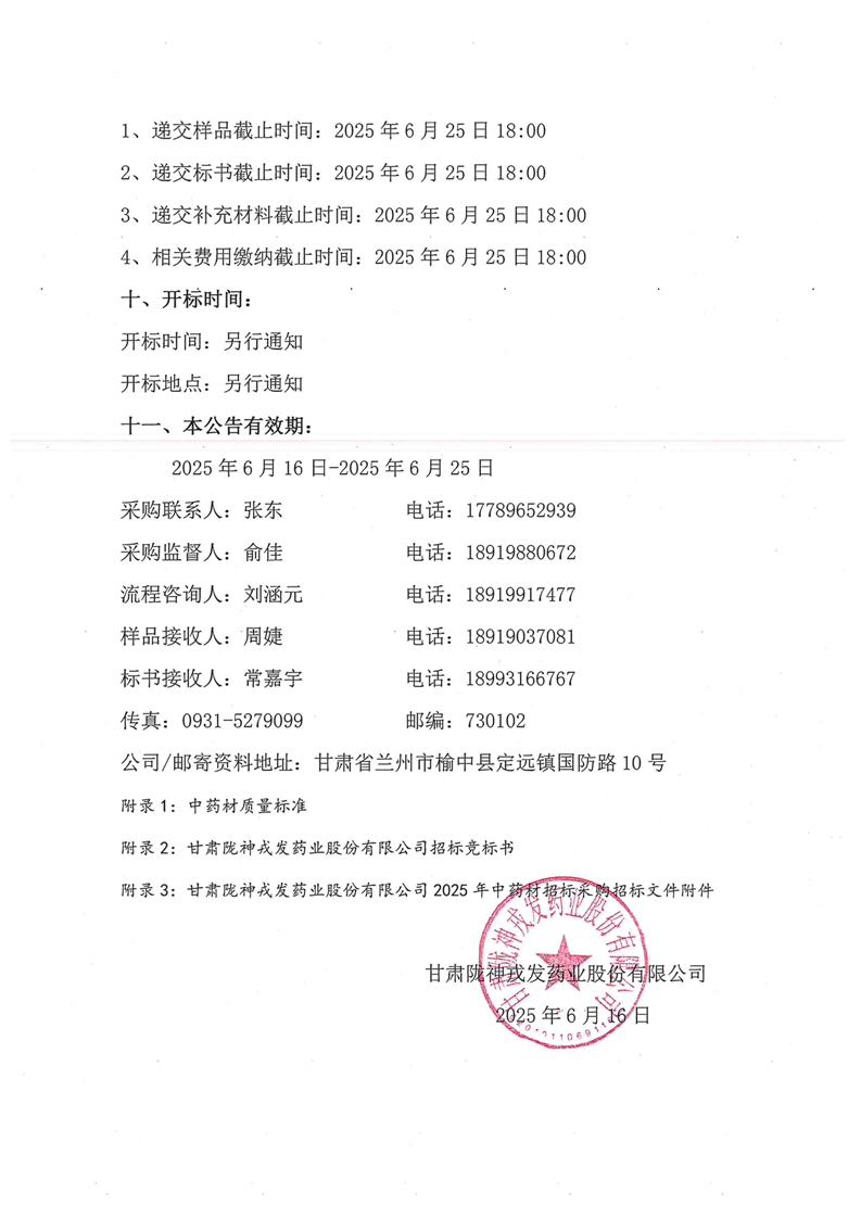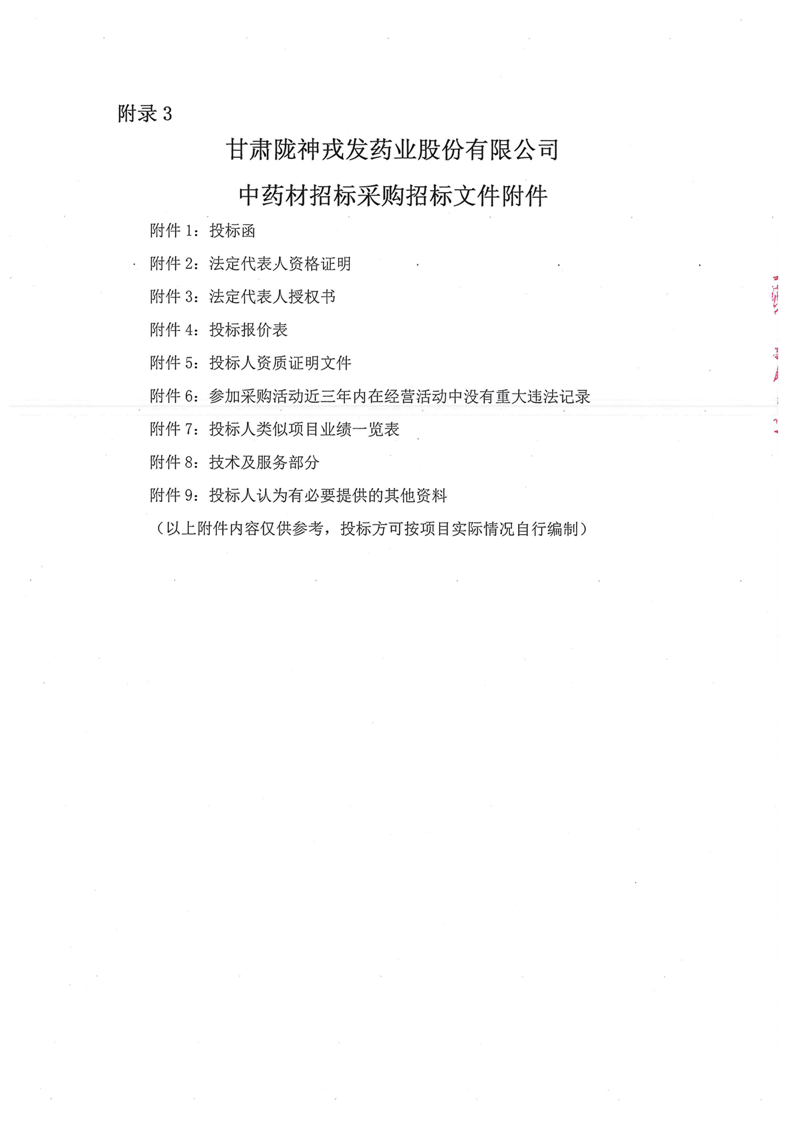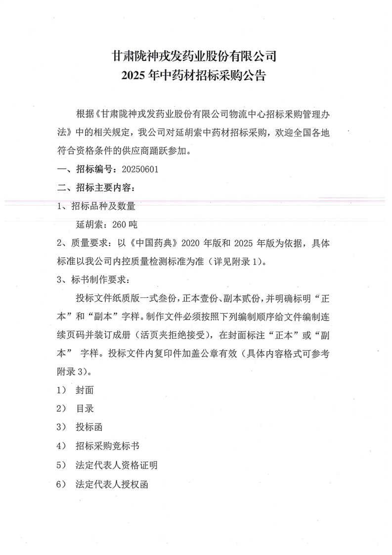 甘肅隴神戎發(fā)藥業(yè)股份有限公司2025年中藥材招標(biāo)采購公告