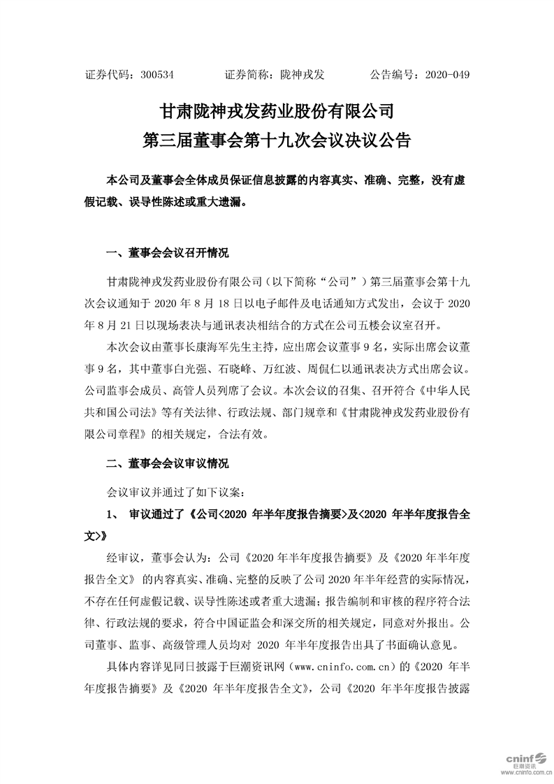 第三屆董事會第十九次會議決議公告
