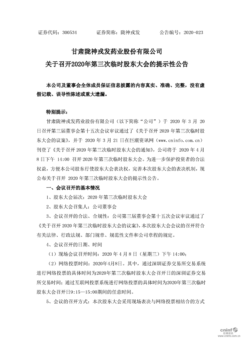 關(guān)于召開2020年第三次臨時股東大會的提示性公告