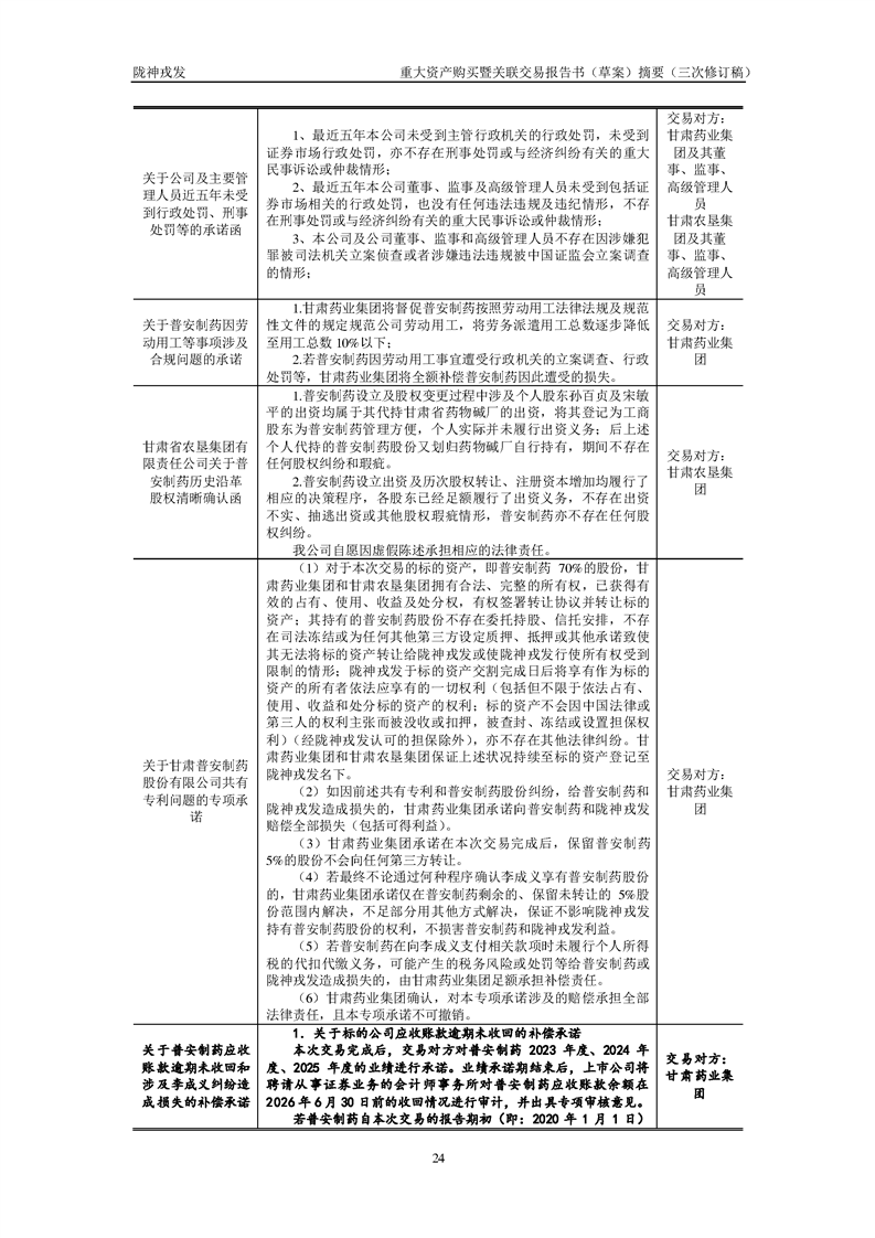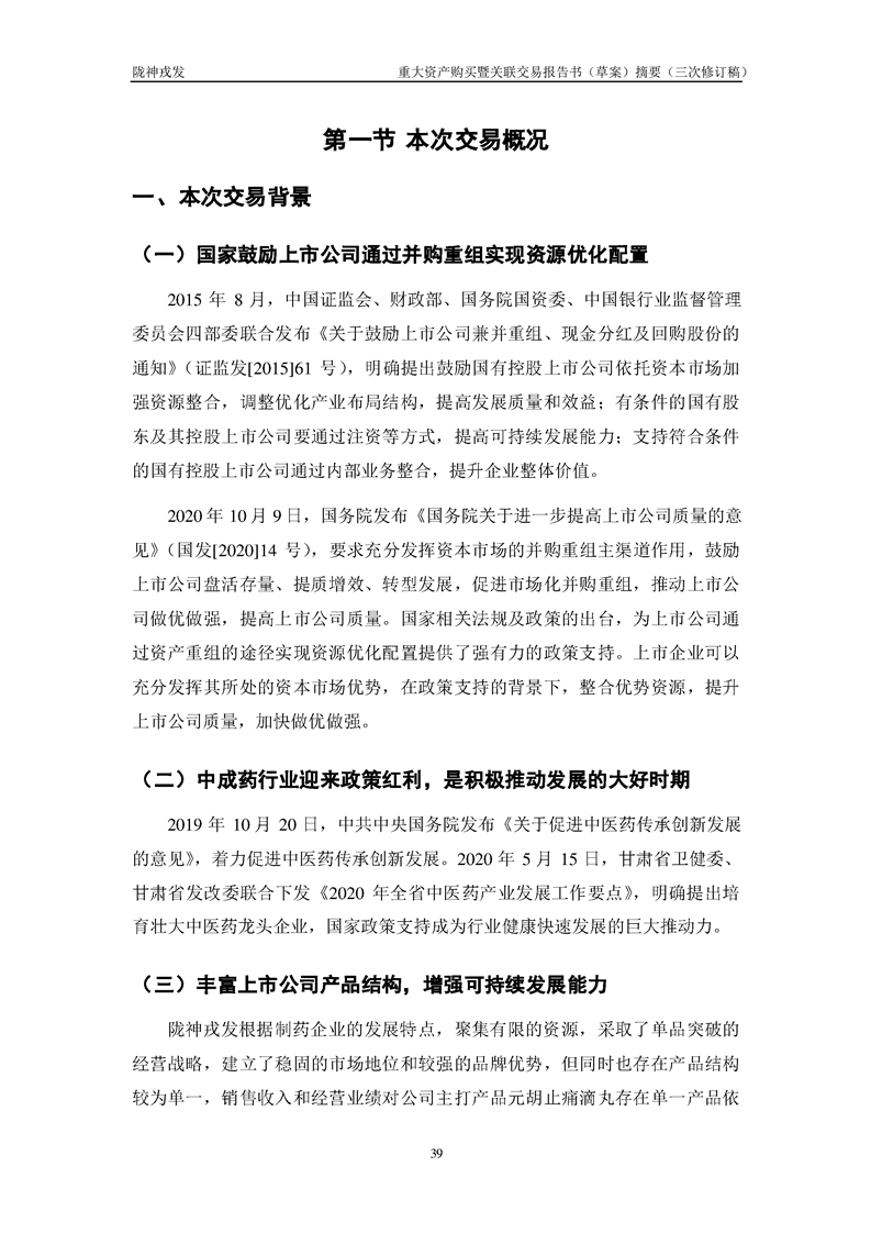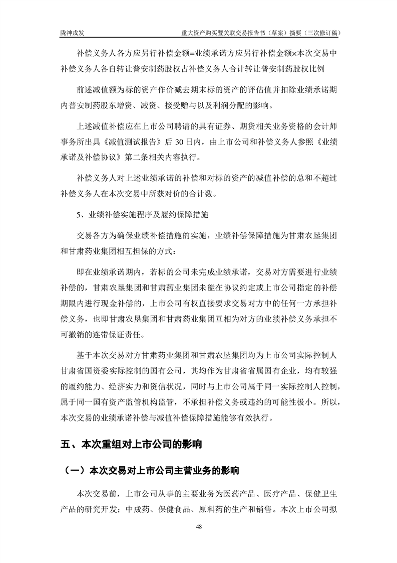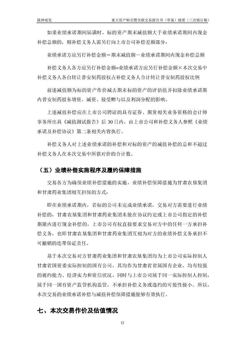 甘肅隴神戎發(fā)藥業(yè)股份有限公司重大資產(chǎn)購(gòu)買暨關(guān)聯(lián)交易報(bào)告書(草案)摘要(三次修訂稿)