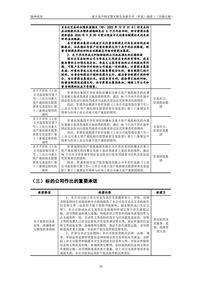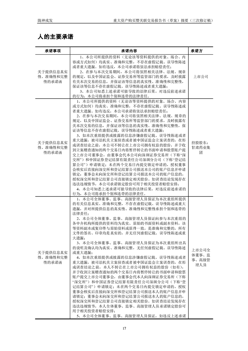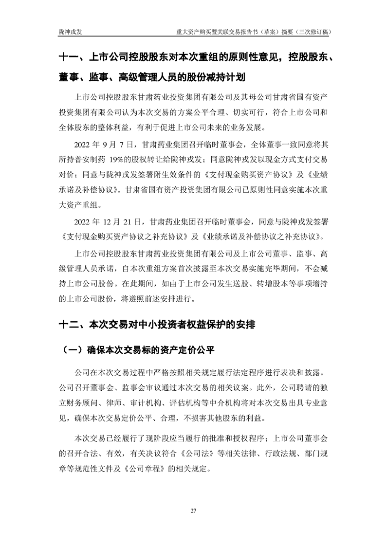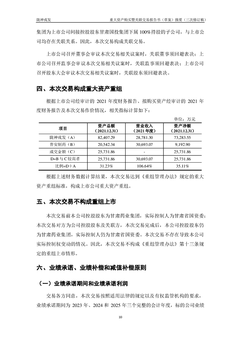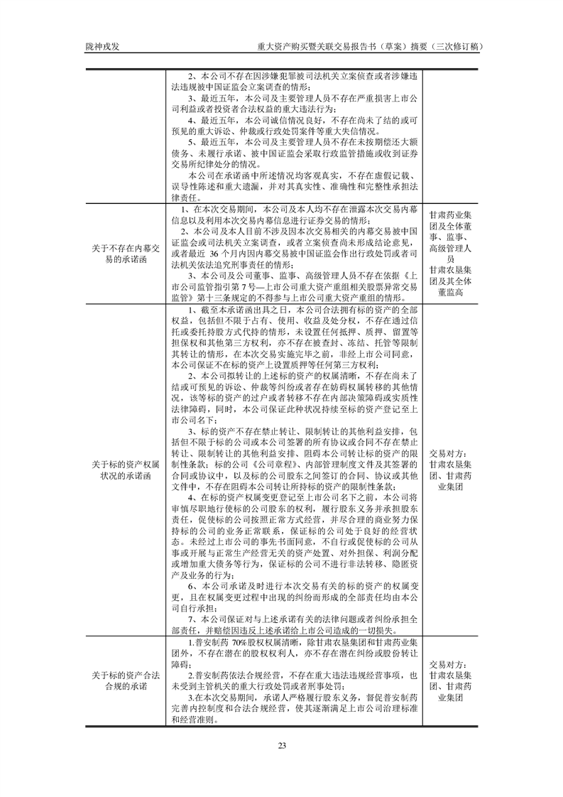 甘肅隴神戎發(fā)藥業(yè)股份有限公司重大資產(chǎn)購(gòu)買暨關(guān)聯(lián)交易報(bào)告書(草案)摘要(三次修訂稿)