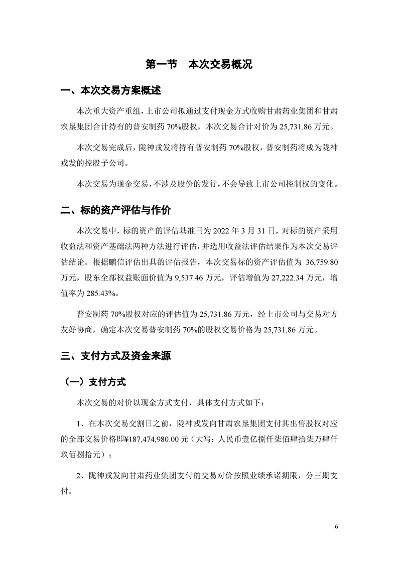 甘肅隴神戎發(fā)藥業(yè)股份有限公司重大資產(chǎn)購買暨關(guān)聯(lián)交易實施情況報告書
