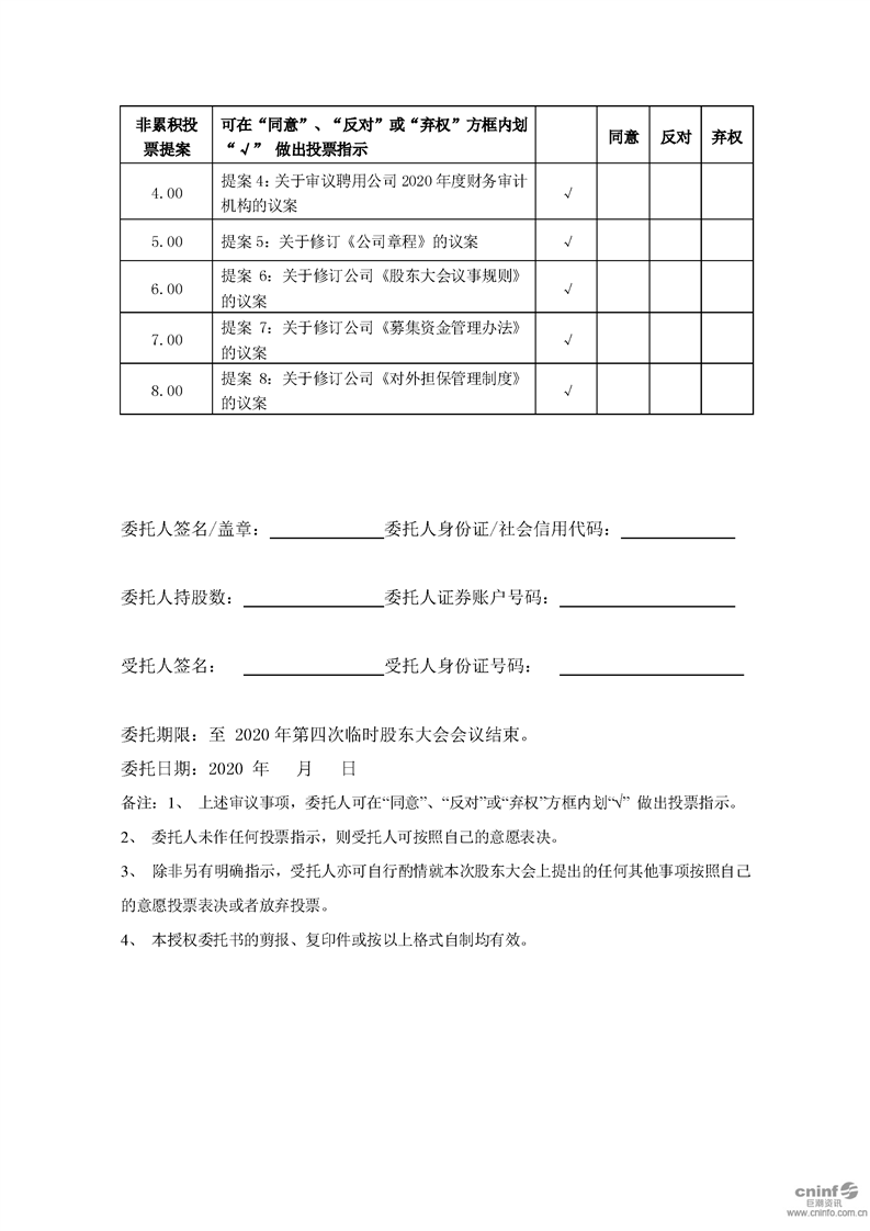 關(guān)于召開2020年第四次臨時股東大會的通知