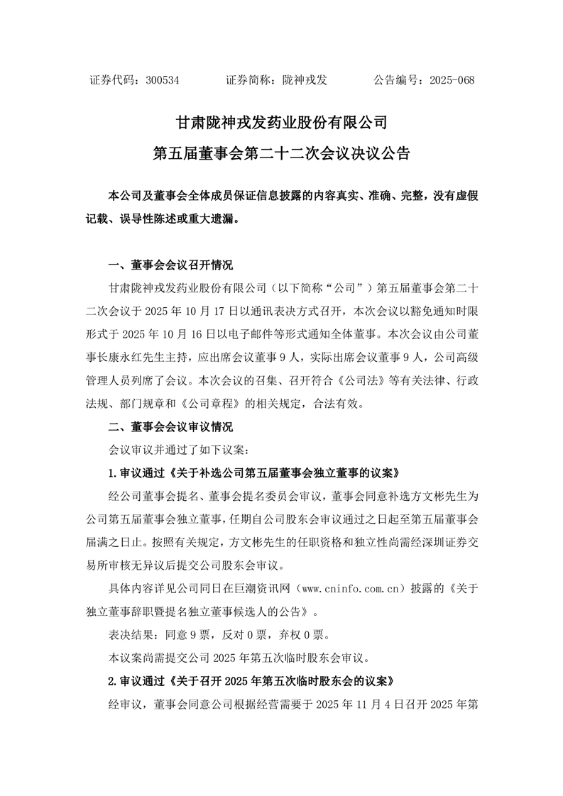 第五屆董事會第二十二次會議決議公告