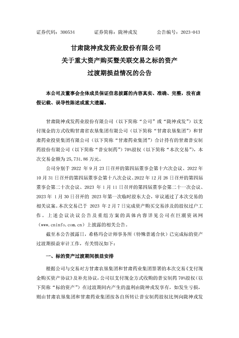 關(guān)于重大資產(chǎn)購(gòu)買(mǎi)暨關(guān)聯(lián)交易之標(biāo)的資產(chǎn)過(guò)渡期損益情況的公告