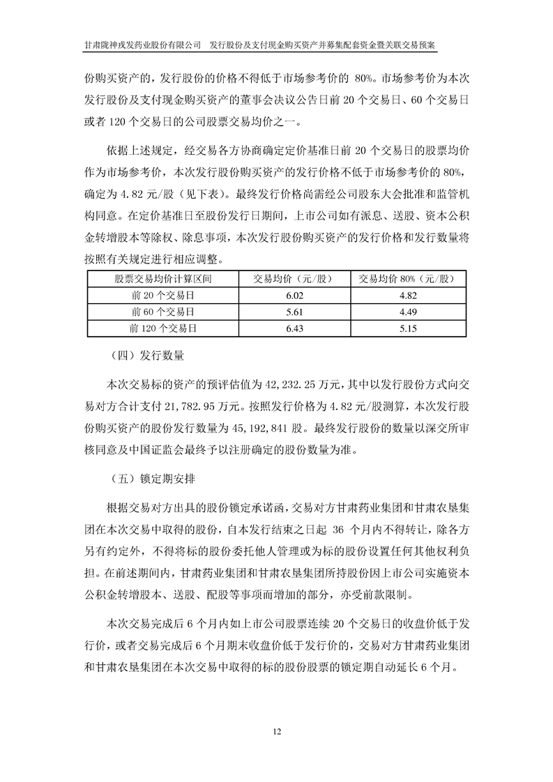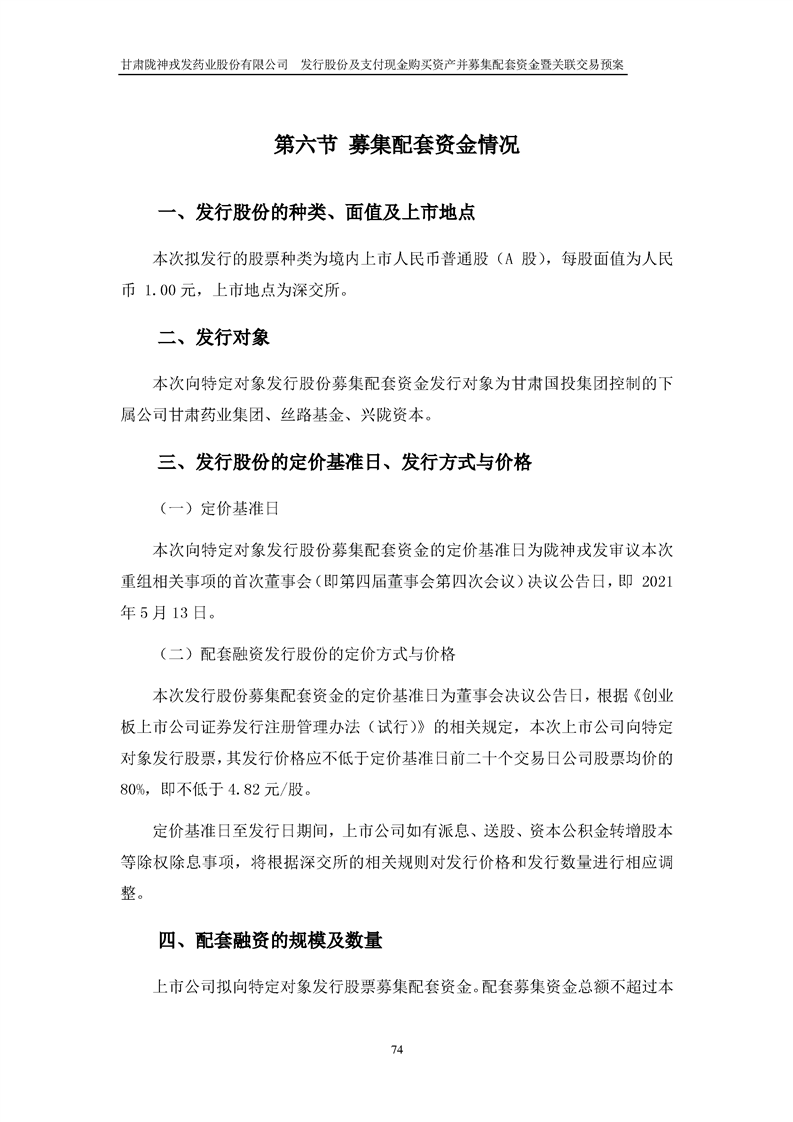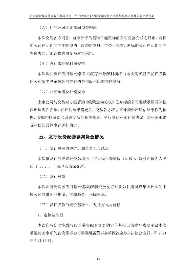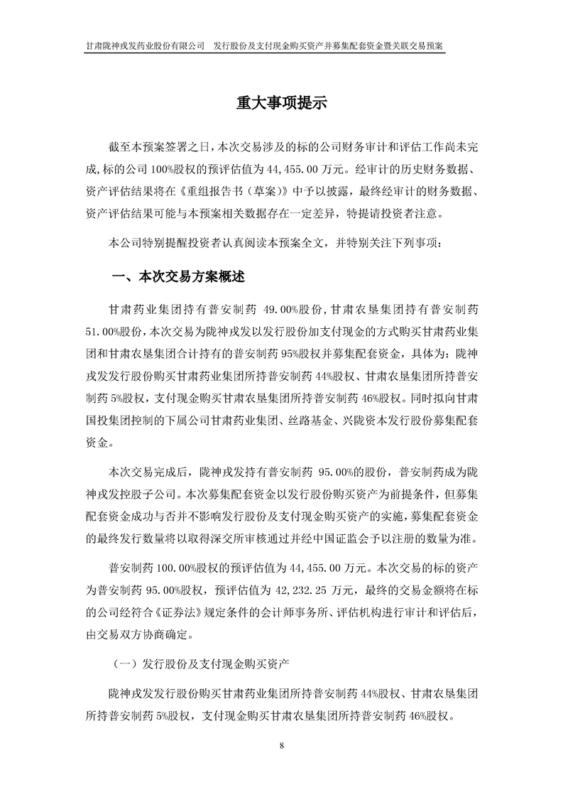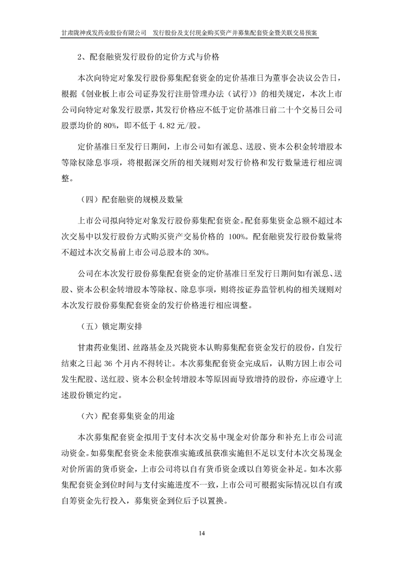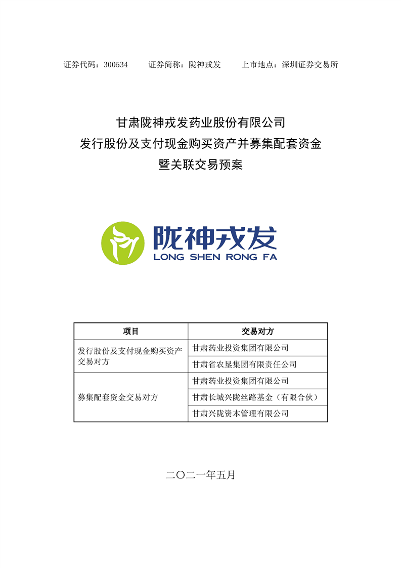 甘肅隴神戎發(fā)藥業(yè)股份有限公司發(fā)行股份及支付現(xiàn)金購買資產(chǎn)并募集配套資金暨關(guān)聯(lián)交易預(yù)案