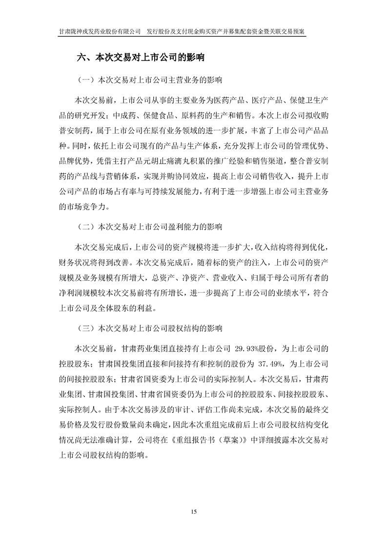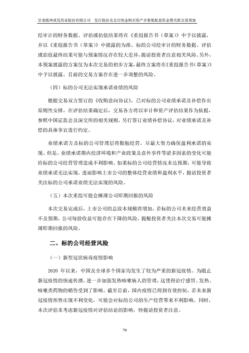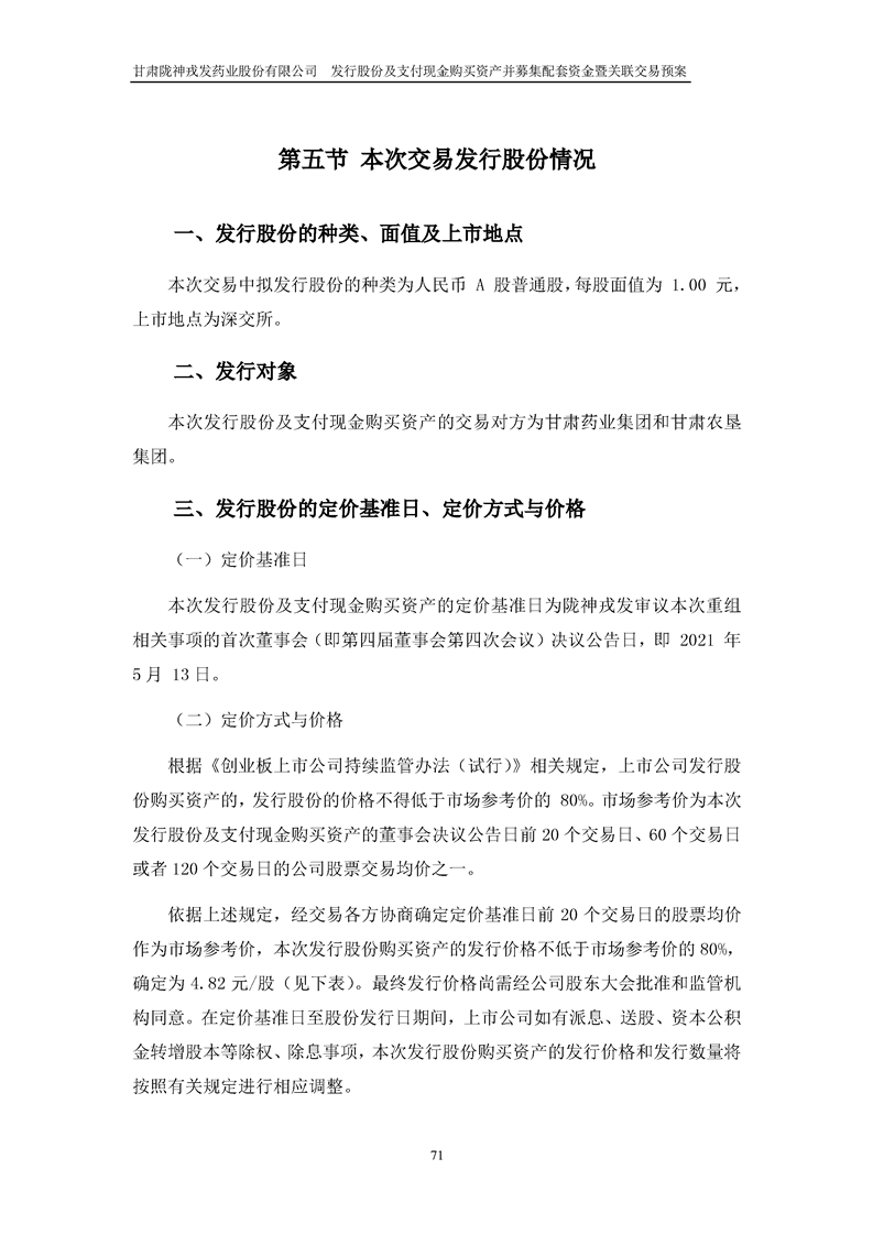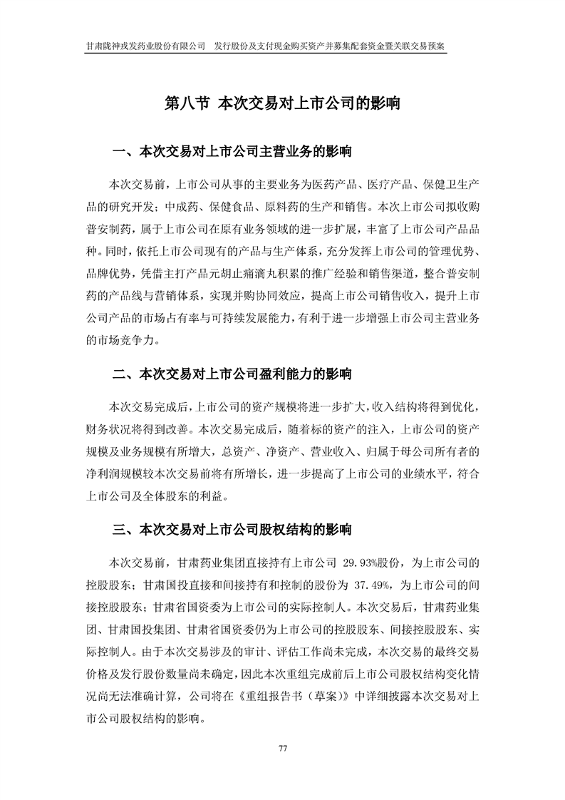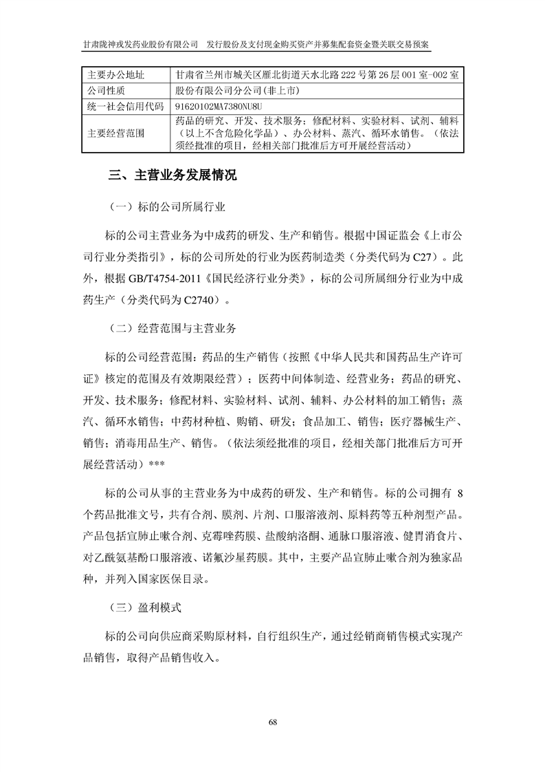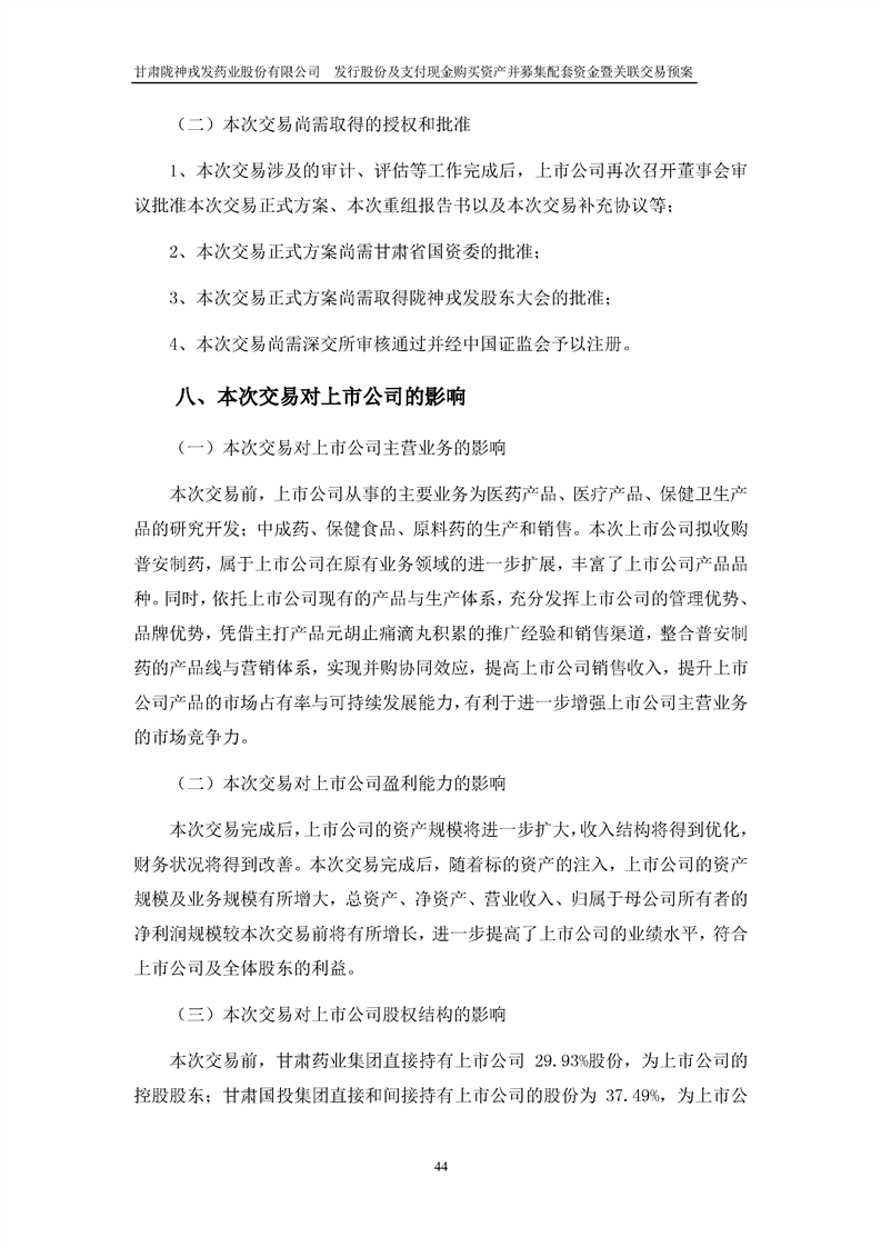 甘肅隴神戎發(fā)藥業(yè)股份有限公司發(fā)行股份及支付現(xiàn)金購買資產(chǎn)并募集配套資金暨關(guān)聯(lián)交易預(yù)案