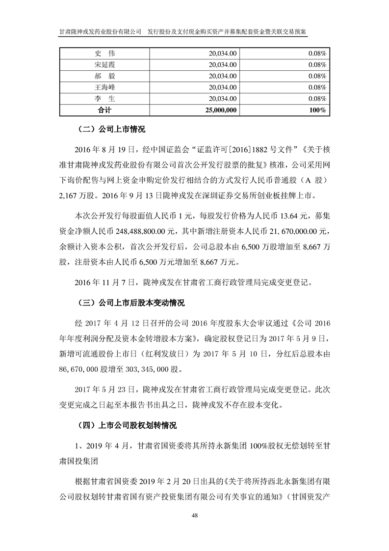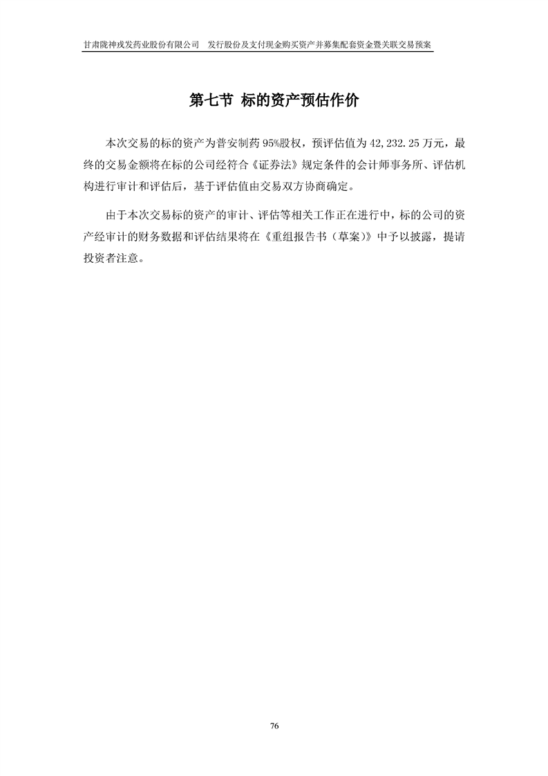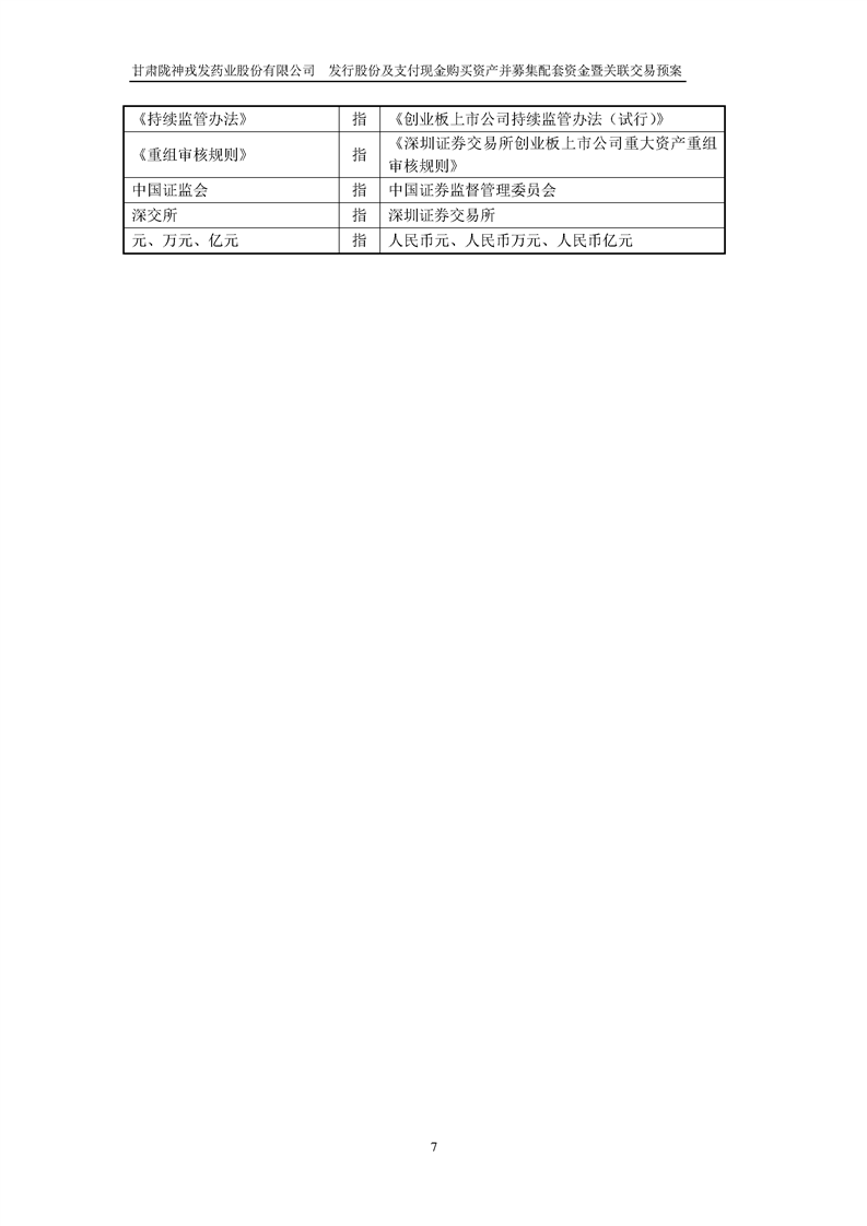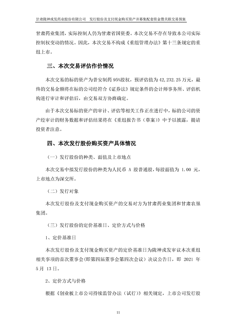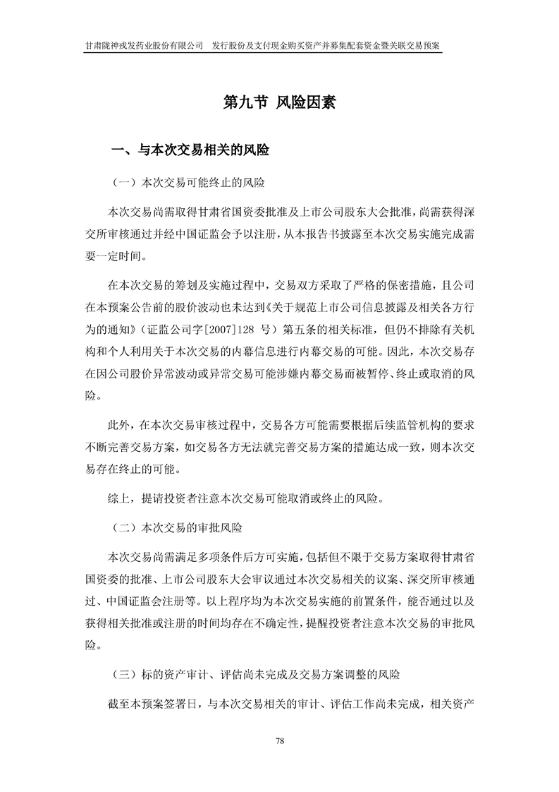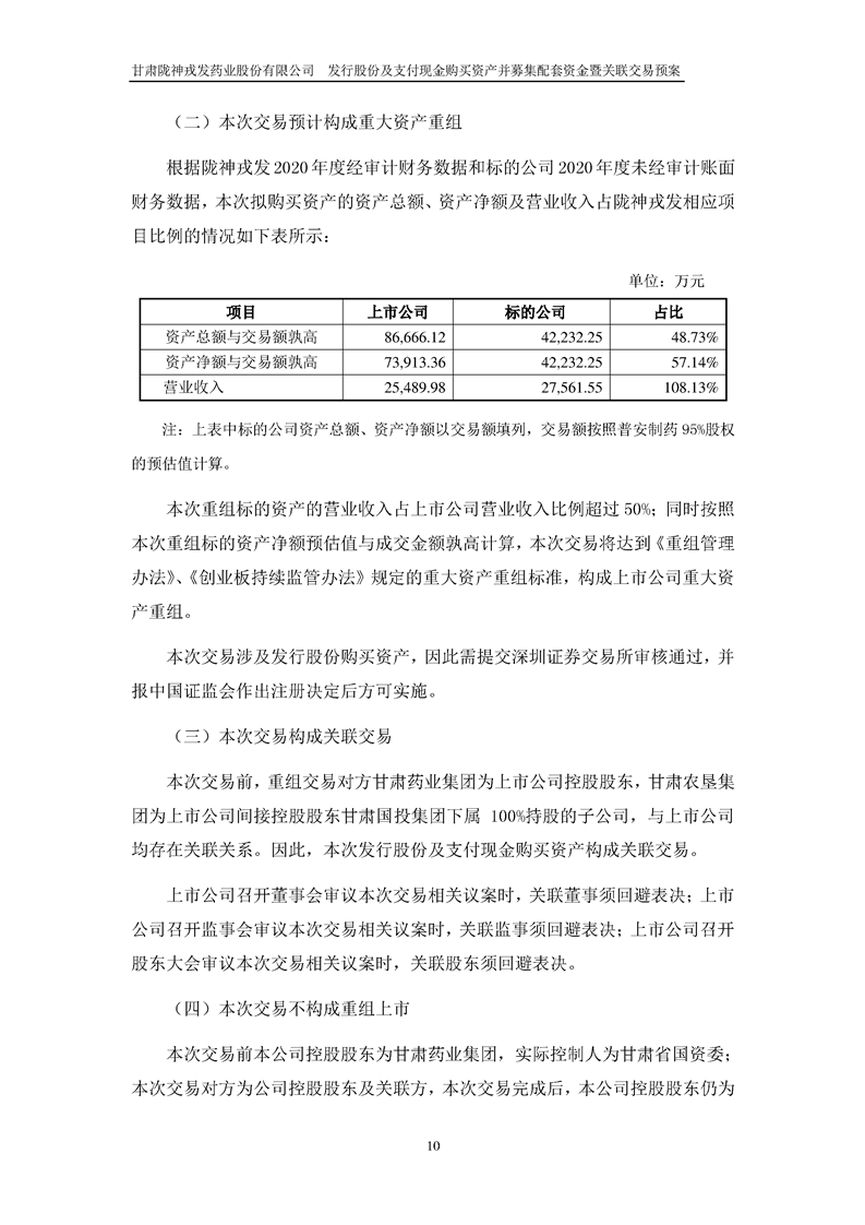 甘肅隴神戎發(fā)藥業(yè)股份有限公司發(fā)行股份及支付現(xiàn)金購買資產(chǎn)并募集配套資金暨關(guān)聯(lián)交易預(yù)案