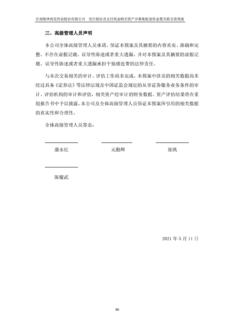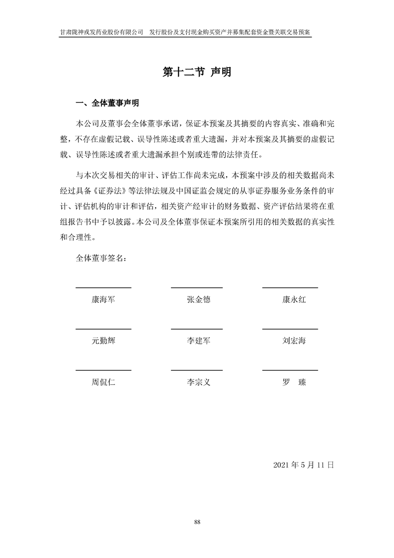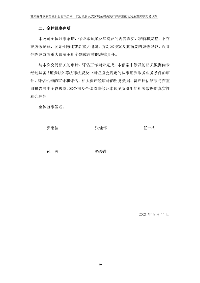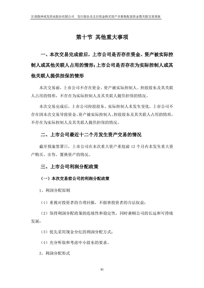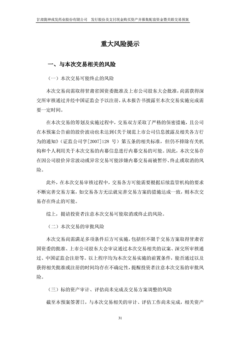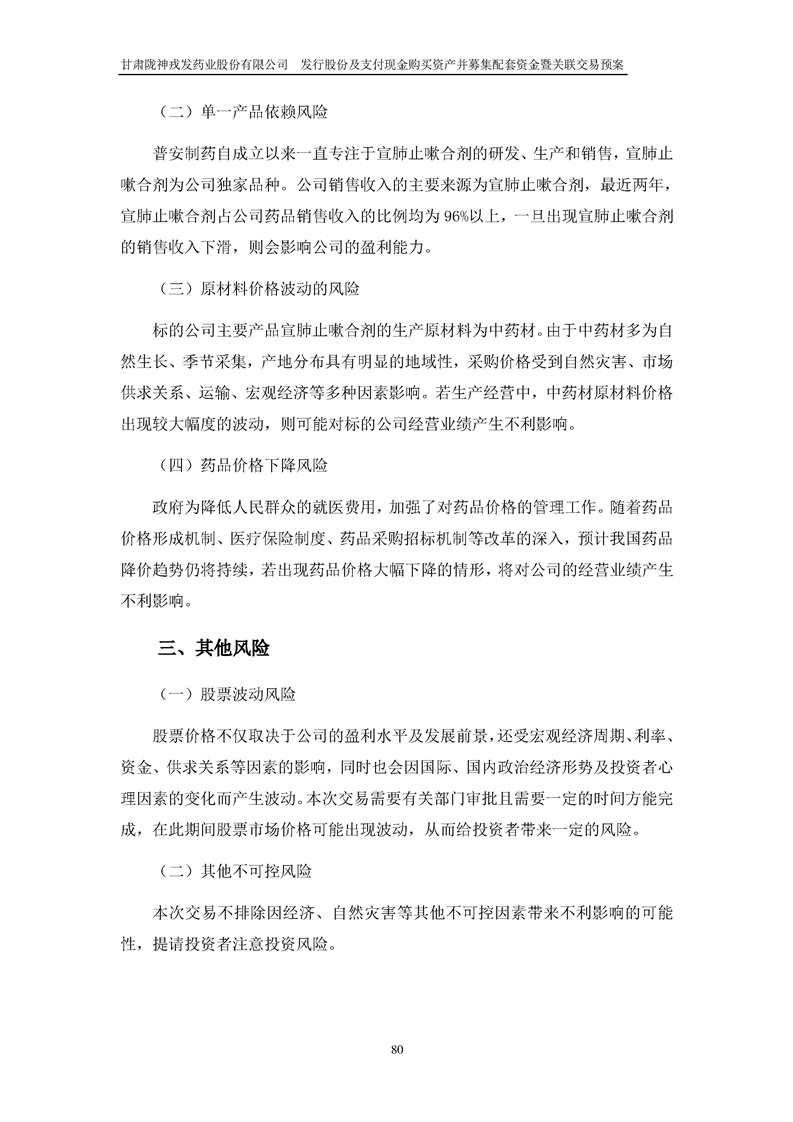 甘肅隴神戎發(fā)藥業(yè)股份有限公司發(fā)行股份及支付現(xiàn)金購買資產(chǎn)并募集配套資金暨關(guān)聯(lián)交易預(yù)案