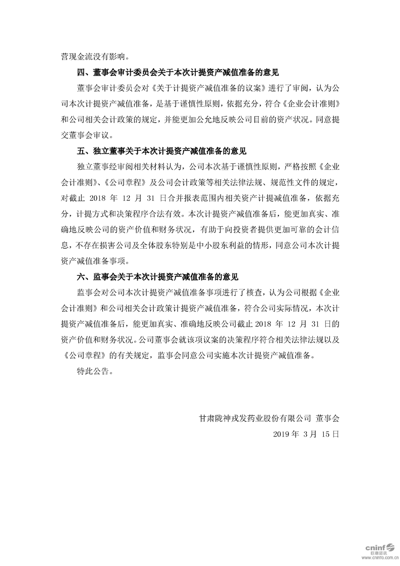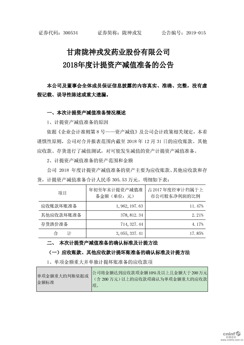 2018年度計提資產(chǎn)減值準備的公告