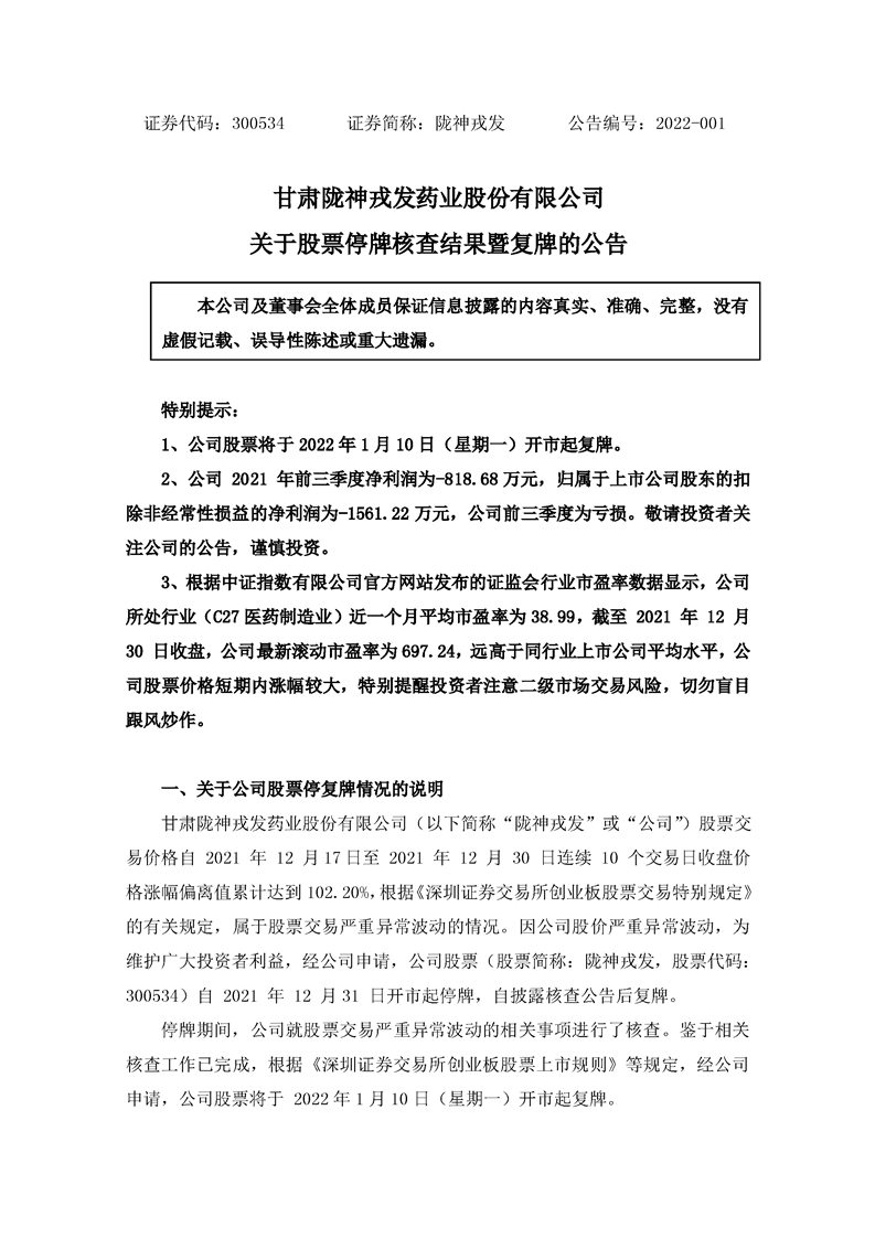 關(guān)于股票停牌核查結(jié)果暨復(fù)牌的公告
