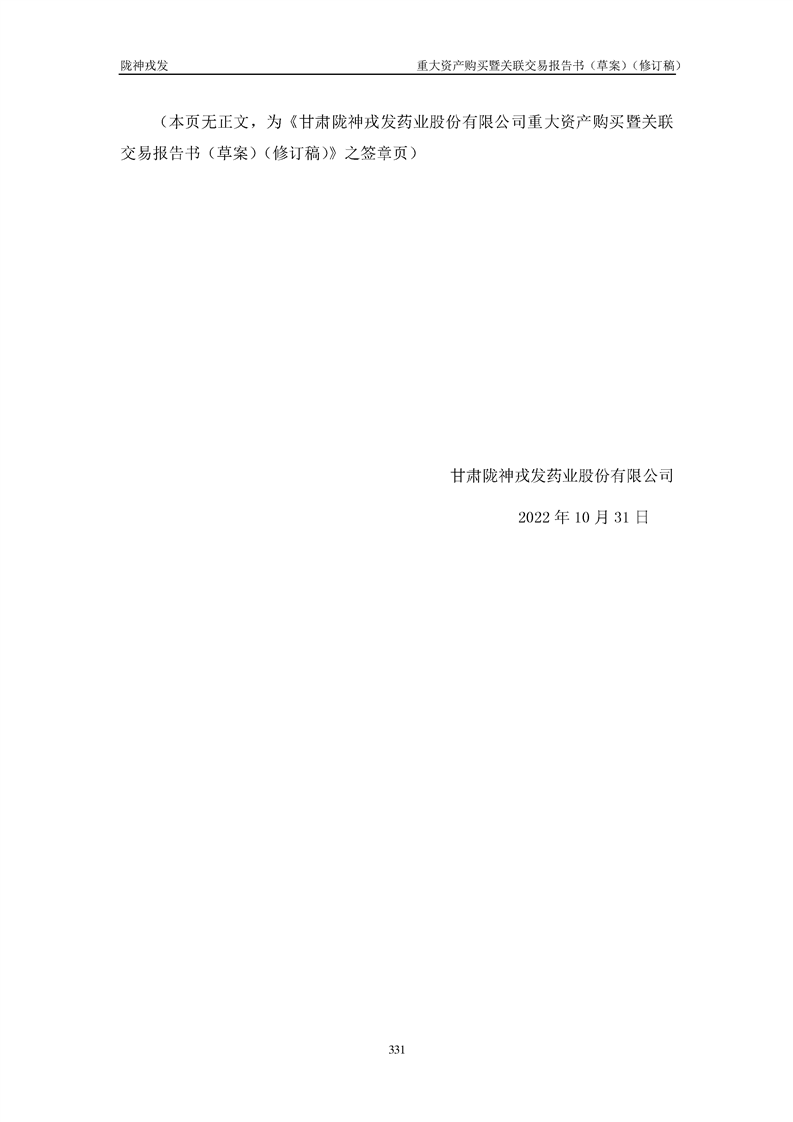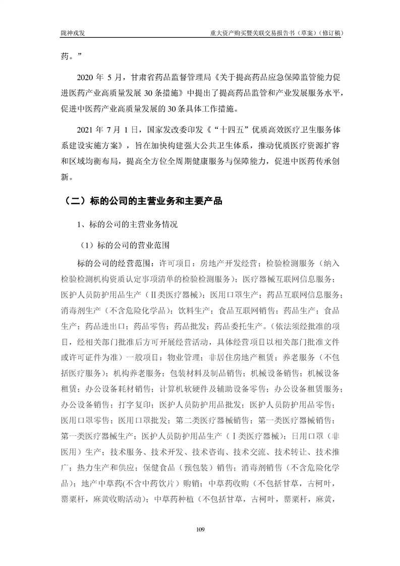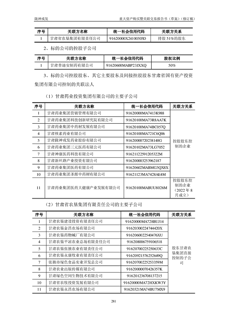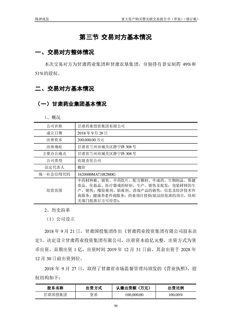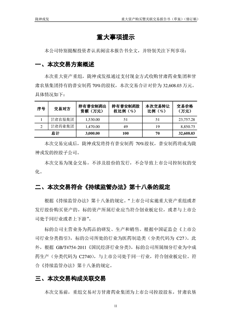 甘肅隴神戎發(fā)藥業(yè)股份有限公司重大資產(chǎn)購買暨關(guān)聯(lián)交易報告書(草案)(修訂稿)