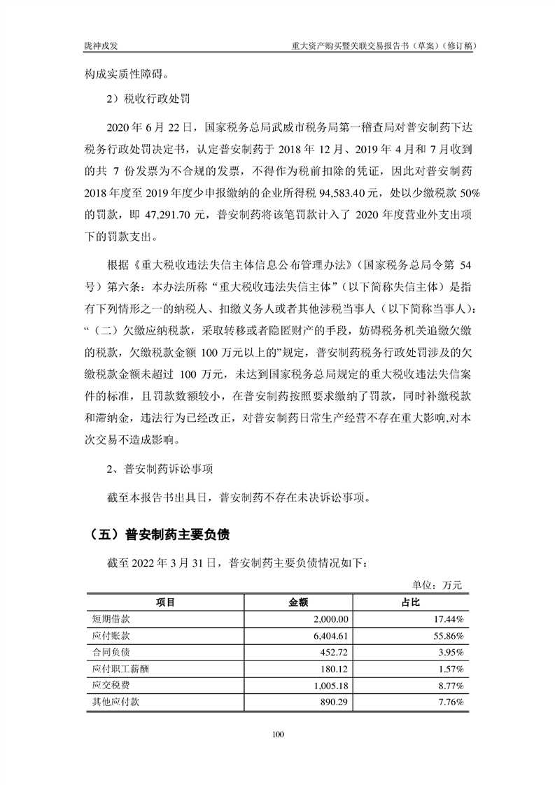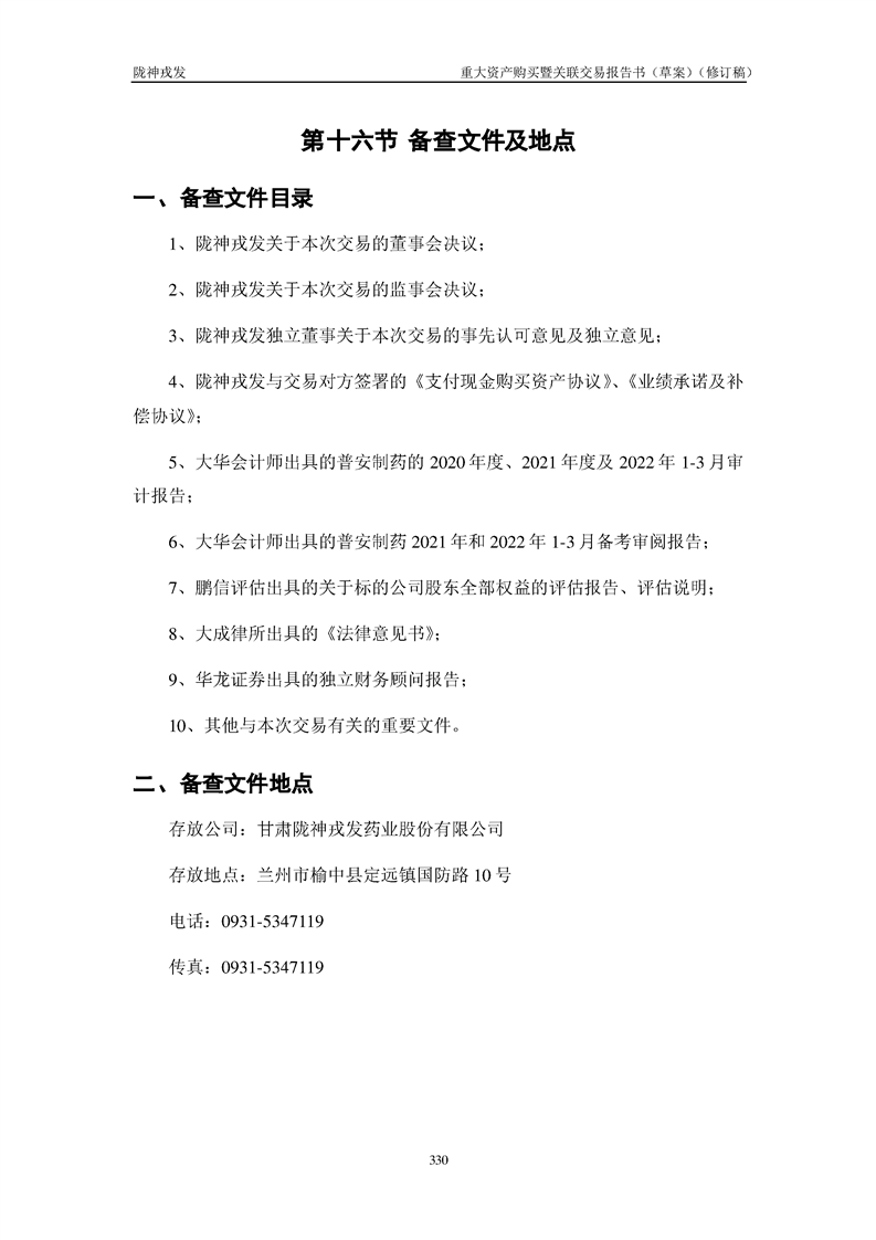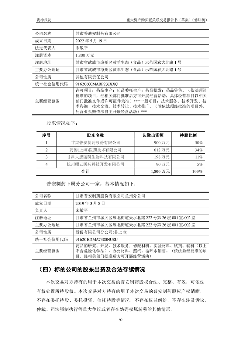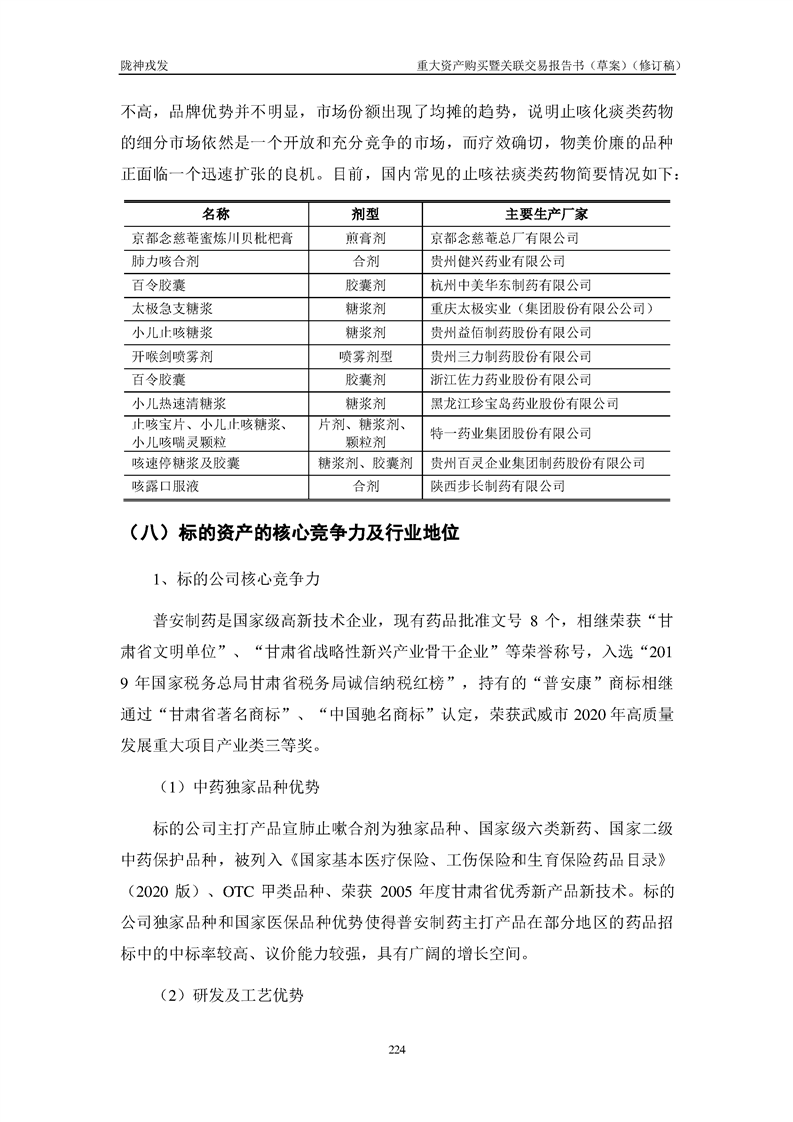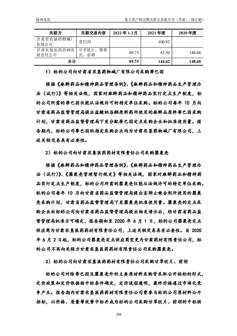 甘肅隴神戎發(fā)藥業(yè)股份有限公司重大資產(chǎn)購買暨關(guān)聯(lián)交易報告書(草案)(修訂稿)