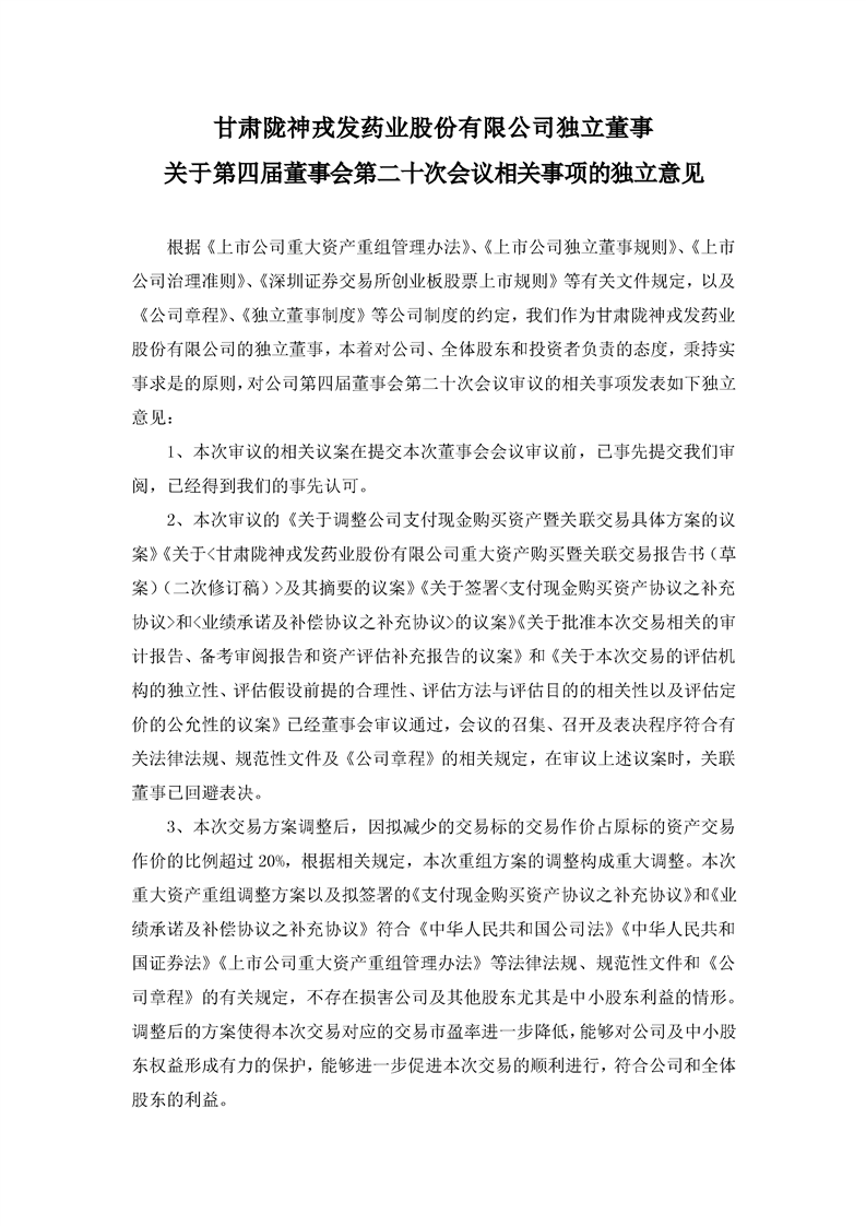 獨立董事關(guān)于第四屆董事會第二十次會議相關(guān)事項的獨立意見