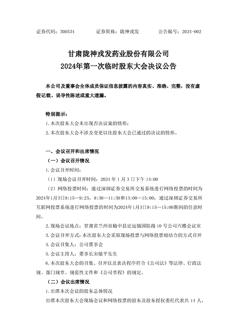 2024年第一次臨時(shí)股東大會(huì)決議公告