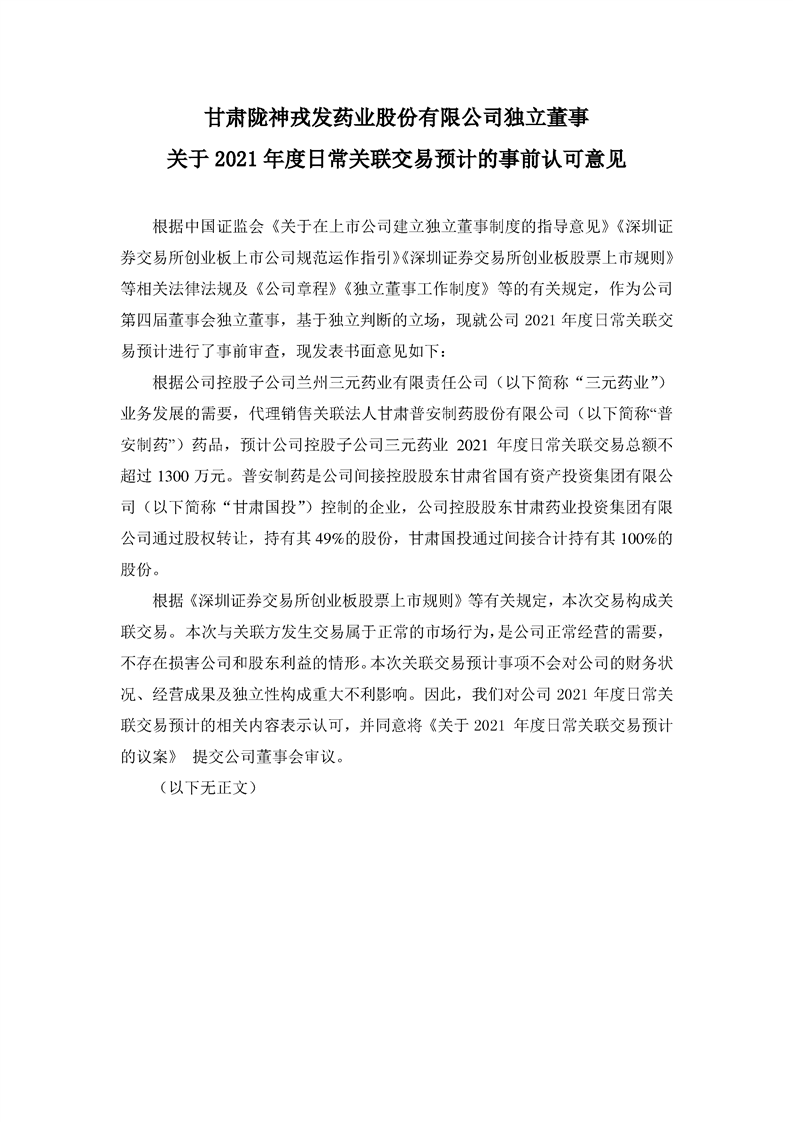 獨立董事關(guān)于2021年度日常關(guān)聯(lián)交易預計的事前認可意見
