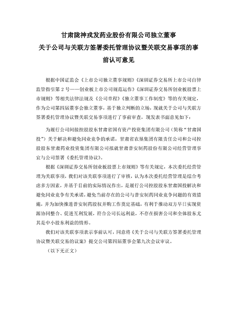 獨立董事關于公司與關聯(lián)方簽署委托管理協(xié)議暨關聯(lián)交易事項的事前認可意見
