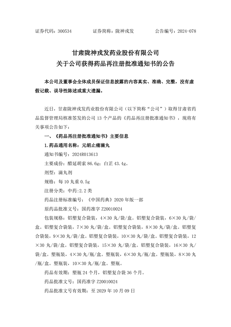 關(guān)于公司獲得藥品再注冊批準(zhǔn)通知書的公告