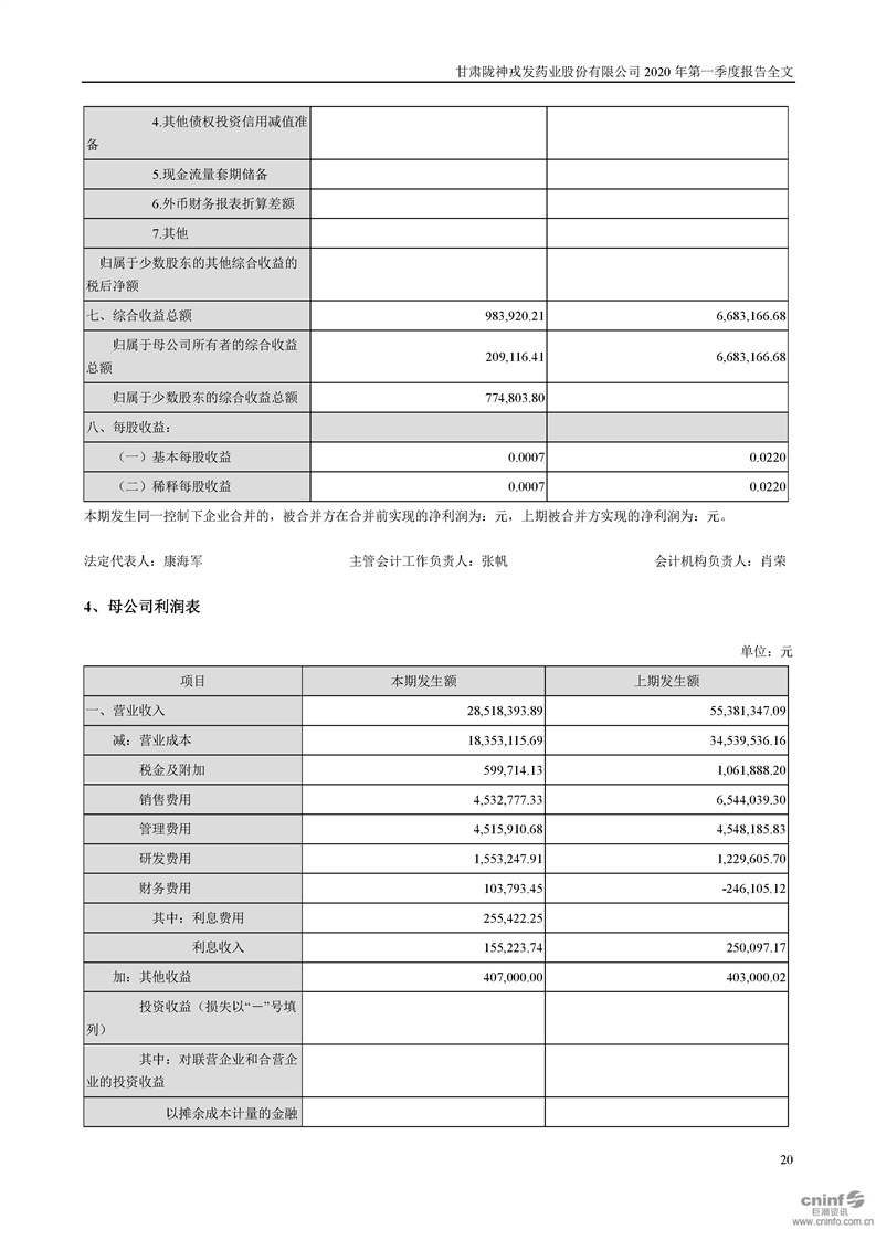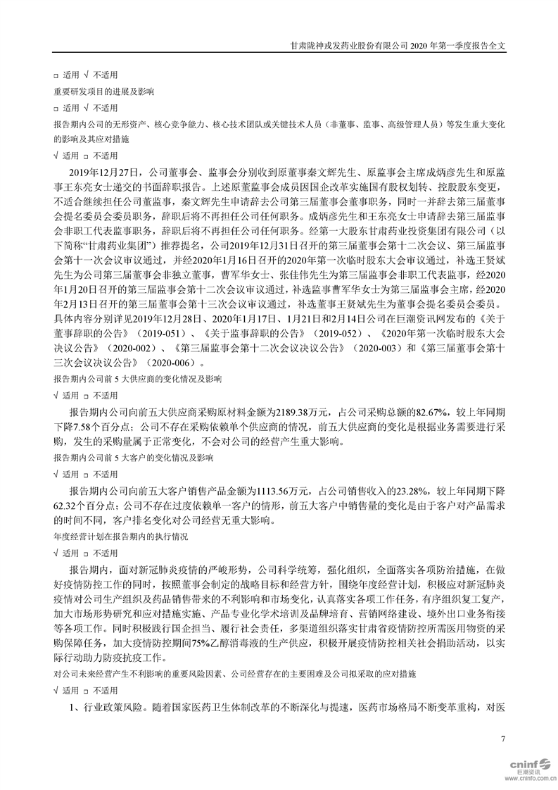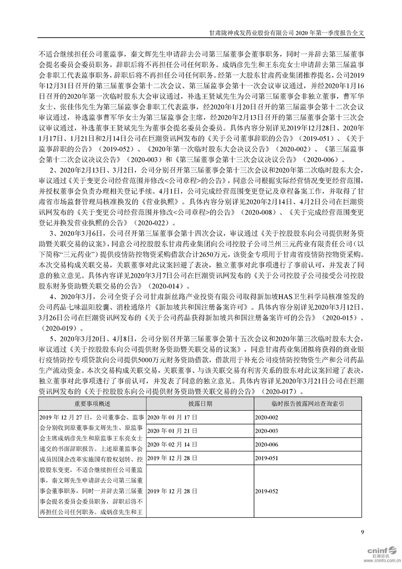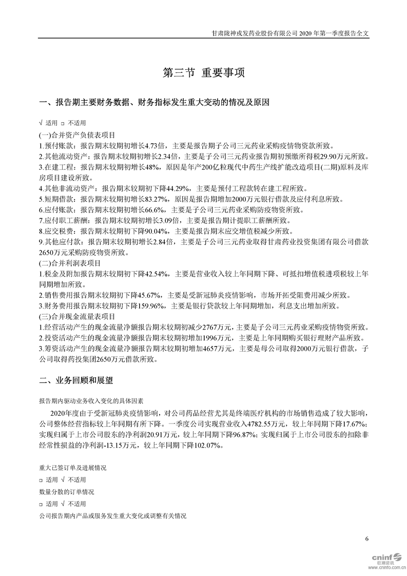 2020年第一季度報告全文