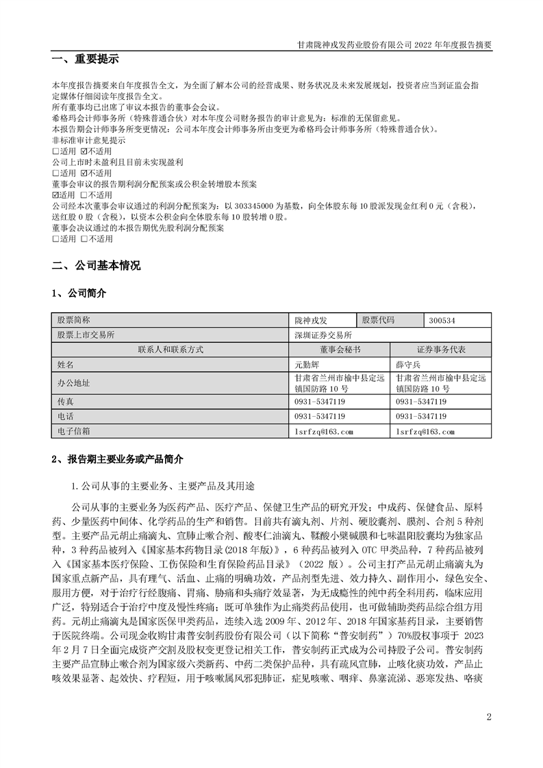 2022年年度報告摘要