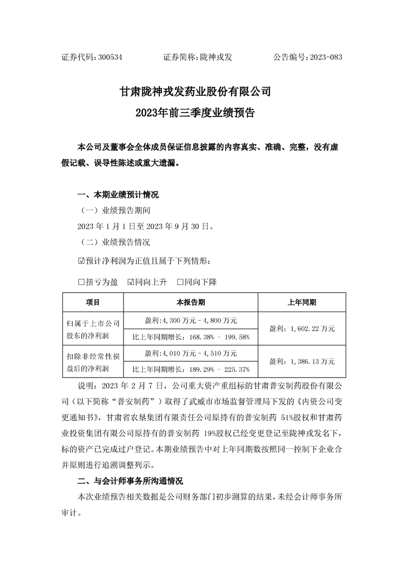 2023年前三季度業(yè)績(jī)預(yù)告