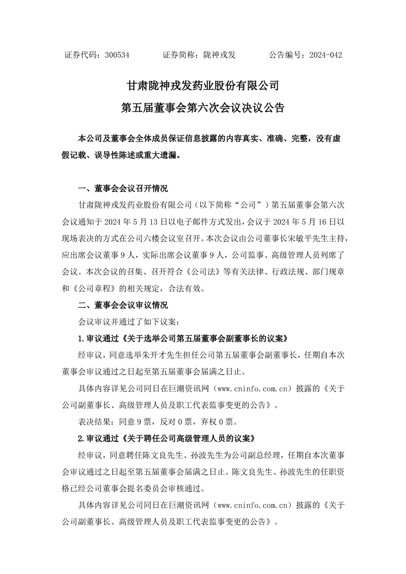 第五屆董事會(huì)第六次會(huì)議決議公告