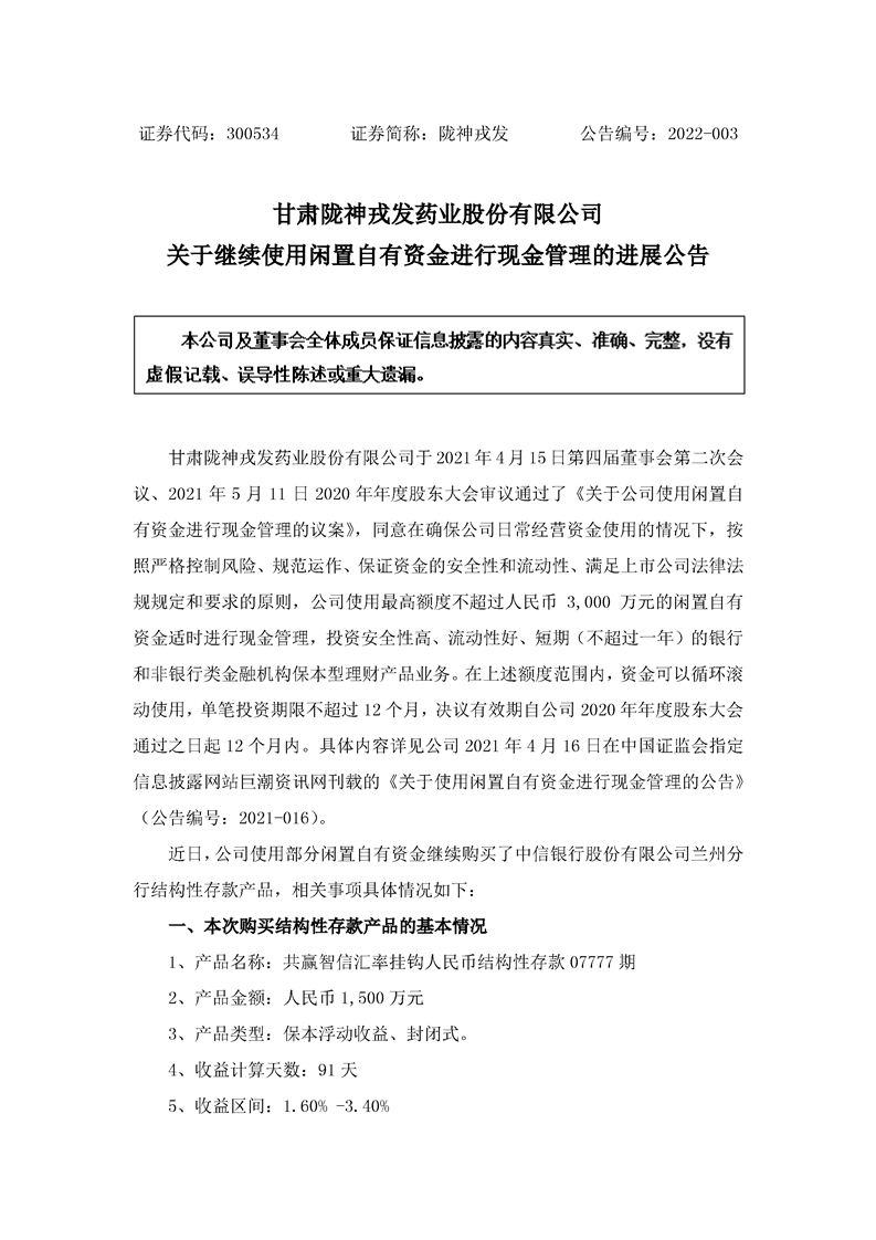 關(guān)于繼續(xù)使用閑置自有資金進行現(xiàn)金管理的進展公告