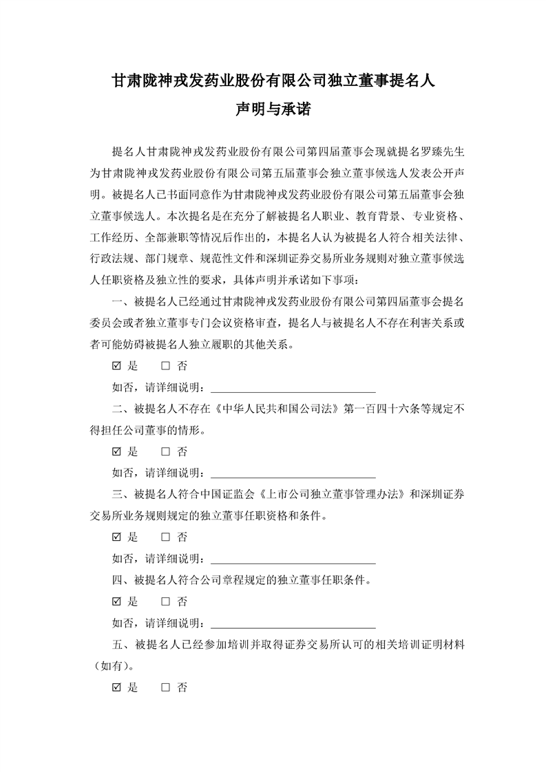 獨(dú)立董事提名人聲明與承諾(羅臻)