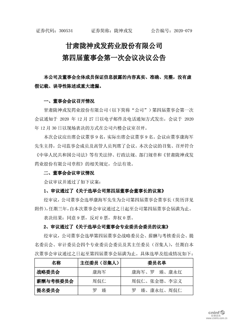 第四屆董事會(huì)第一次會(huì)議決議公告