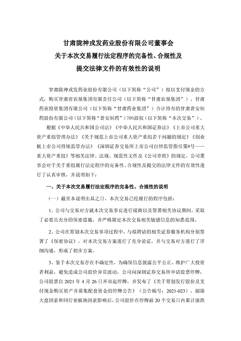 董事會(huì)關(guān)于本次交易履行法定程序的完備性、合規(guī)性及提交法律文件的有效性的說(shuō)明