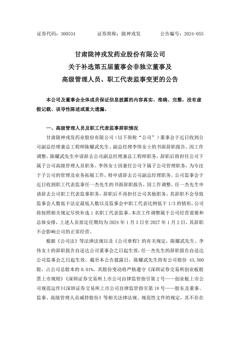 關(guān)于補選第五屆董事會非獨立董事及高級管理人員、職工代表監(jiān)事變更的公告