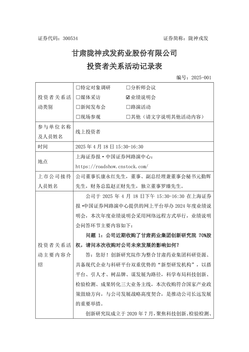 2024年度業(yè)績說明會投資者關系活動記錄表