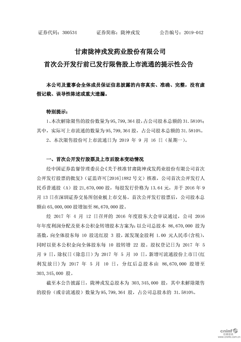 首次公開發(fā)行前已發(fā)行限售股上市流通的提示性公告