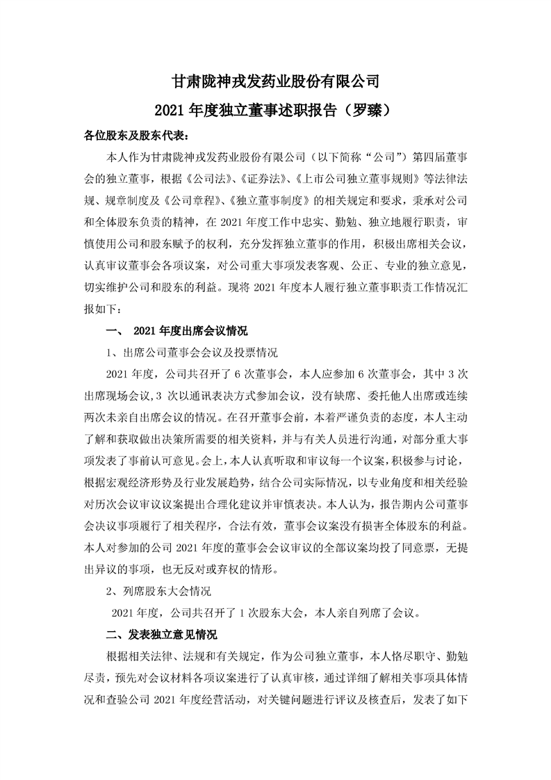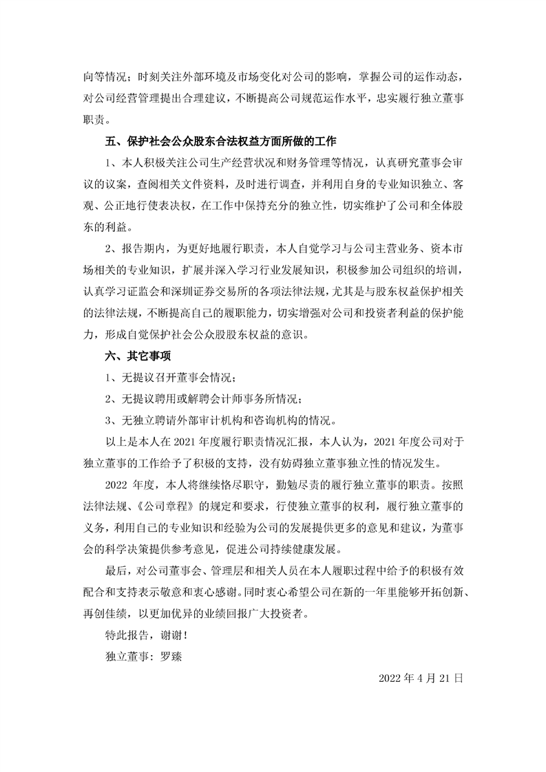 2021年獨立董事述職報告(羅臻)