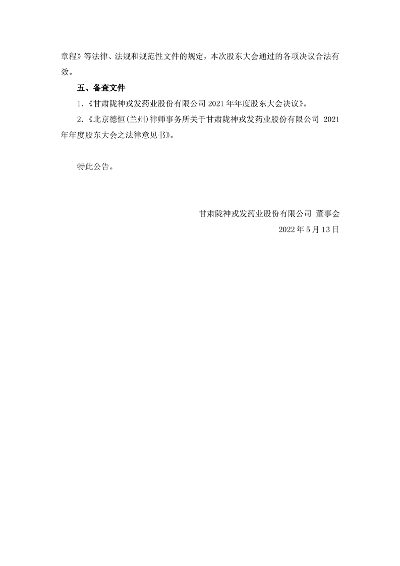 2021年年度股東大會(huì)決議公告