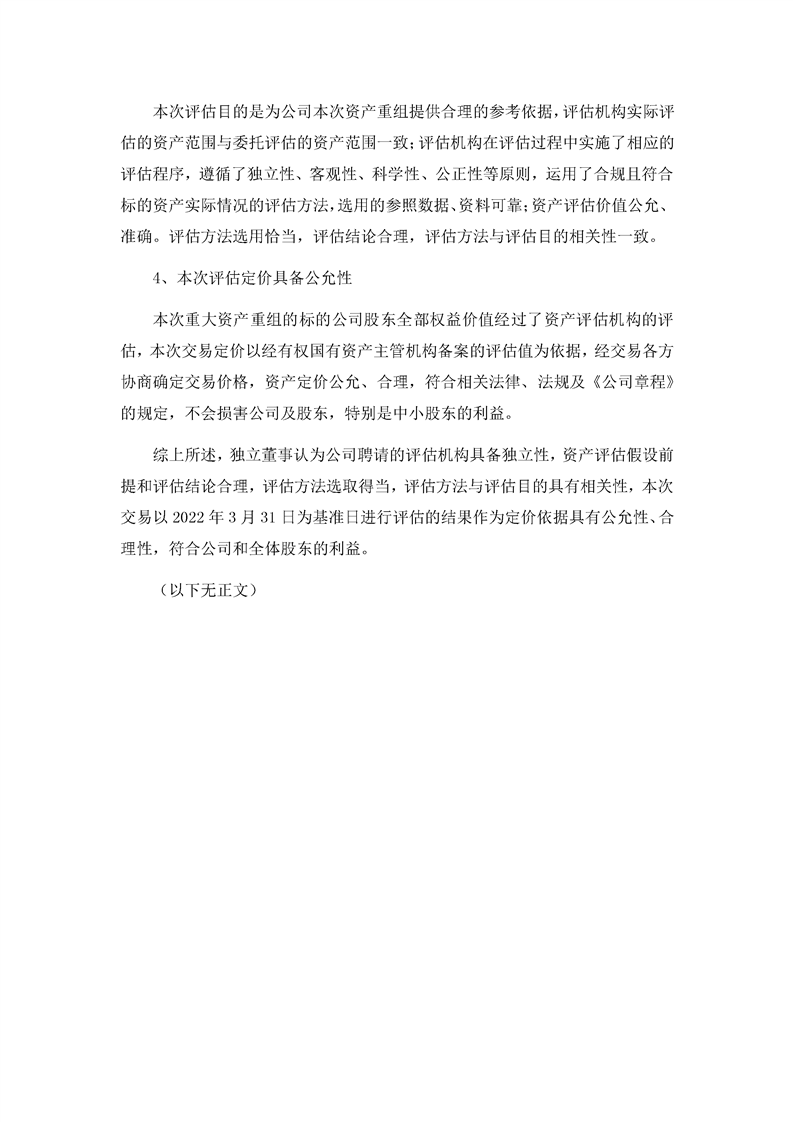 獨立董事關(guān)于評估機構(gòu)獨立性、評估假設(shè)前提合理性、評估方法與評估目的的相關(guān)性及評估定價公允性的獨立意見
