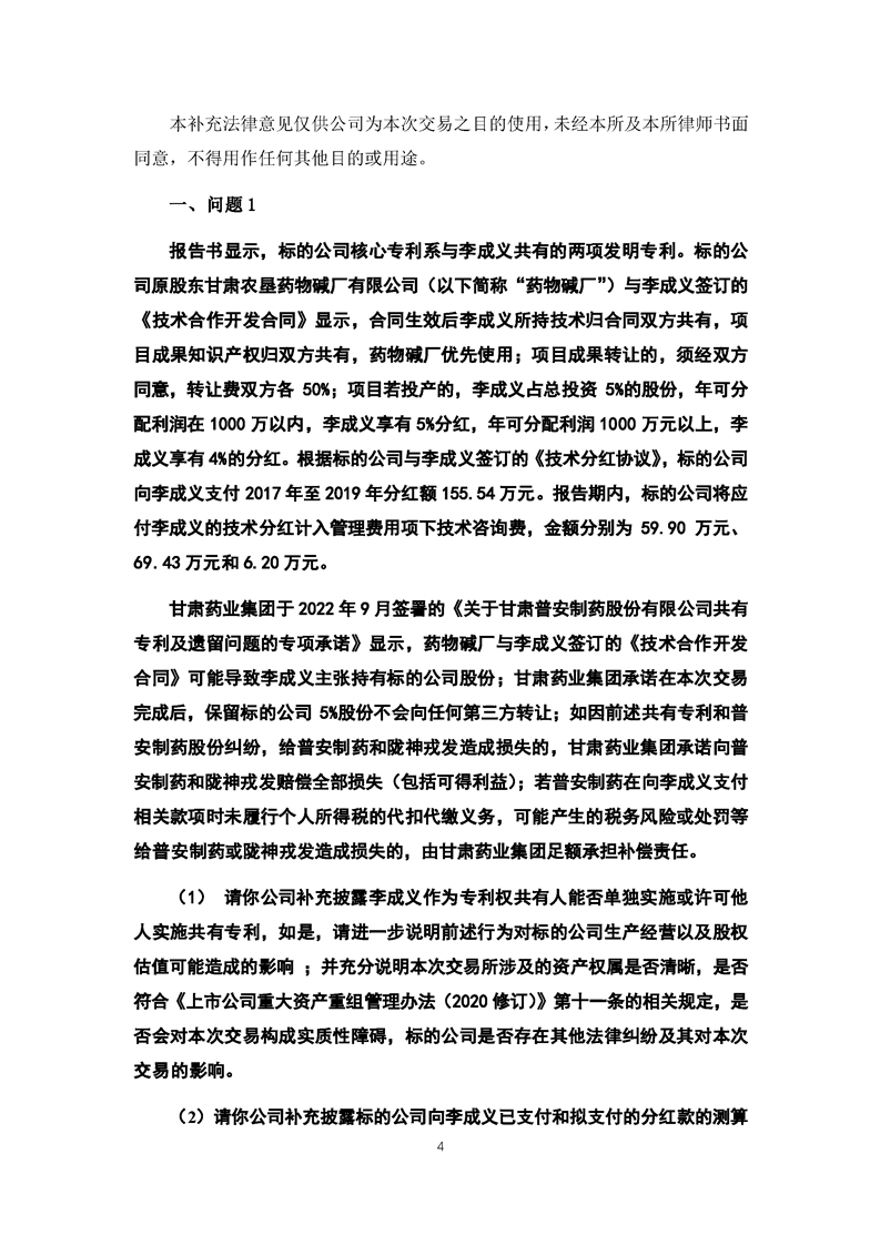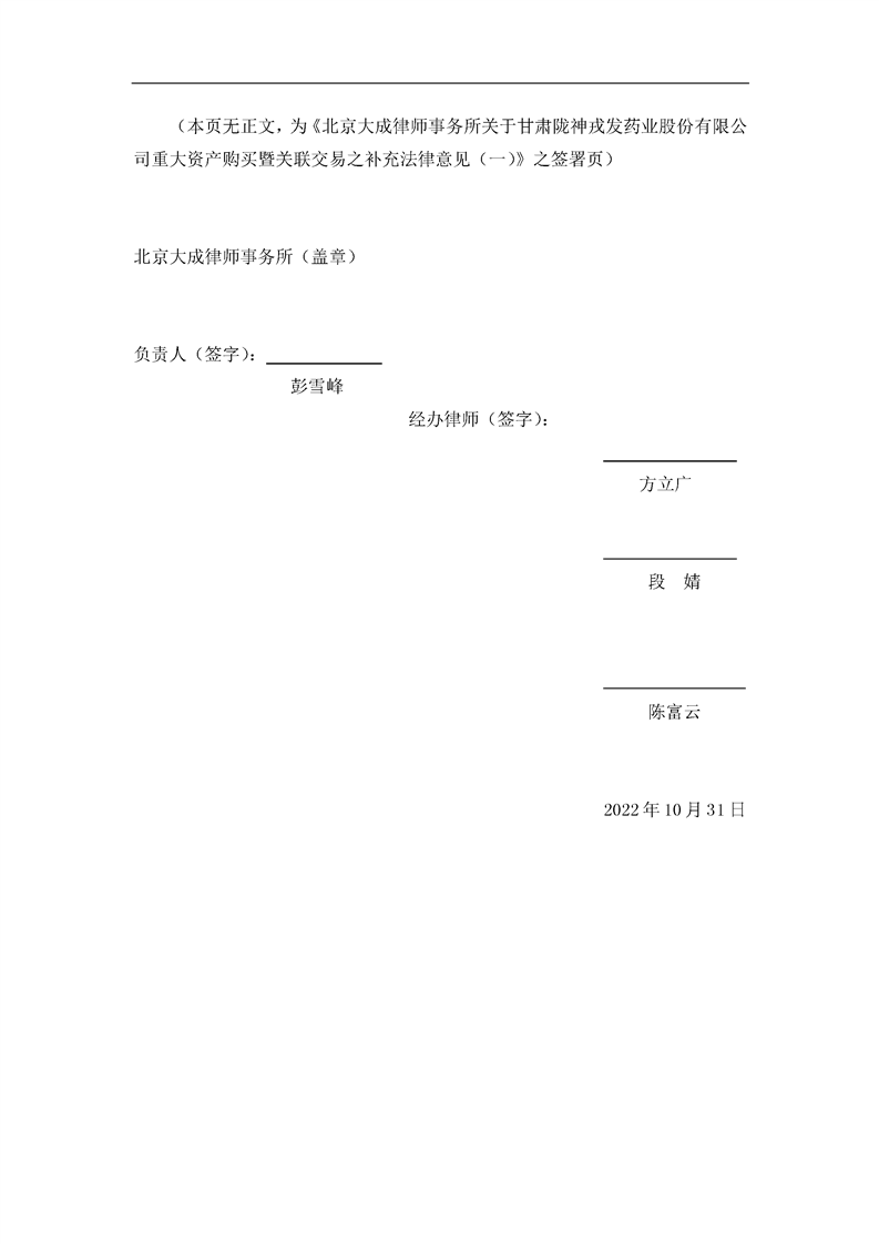 北京大成律師事務所關于甘肅隴神戎發(fā)藥業(yè)股份有限公司重大資產(chǎn)購買暨關聯(lián)交易補充法律意見(一)