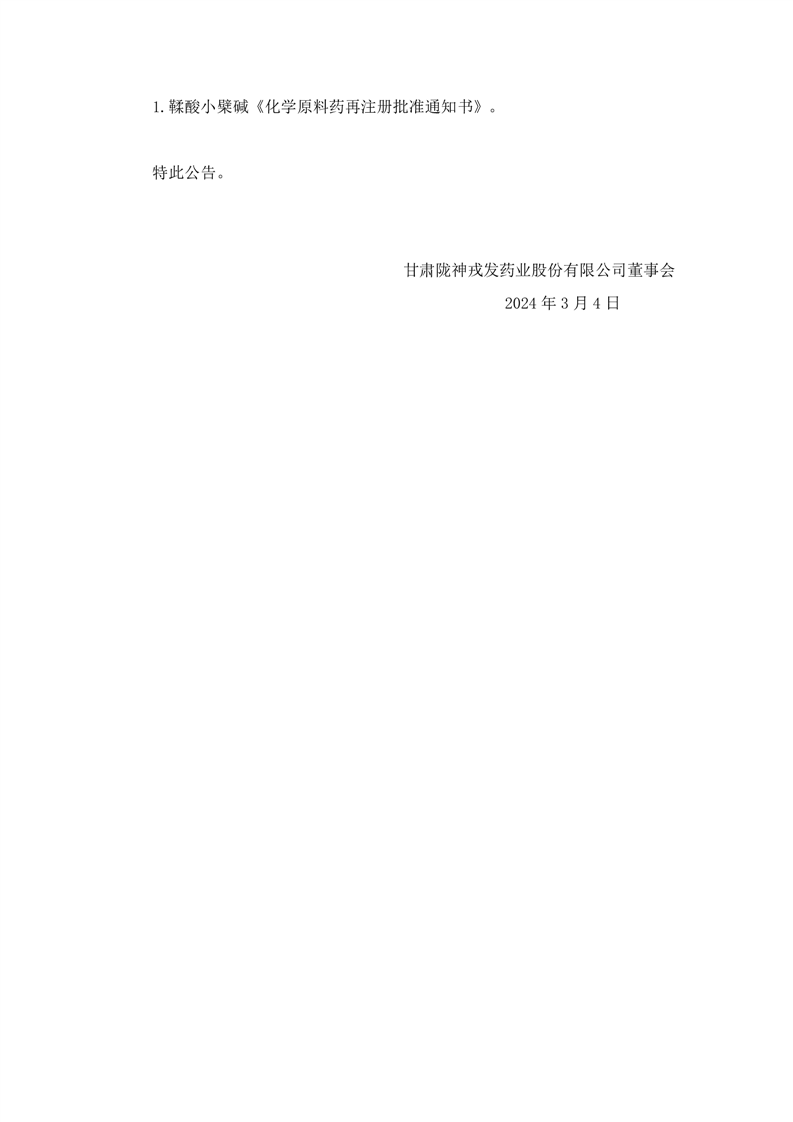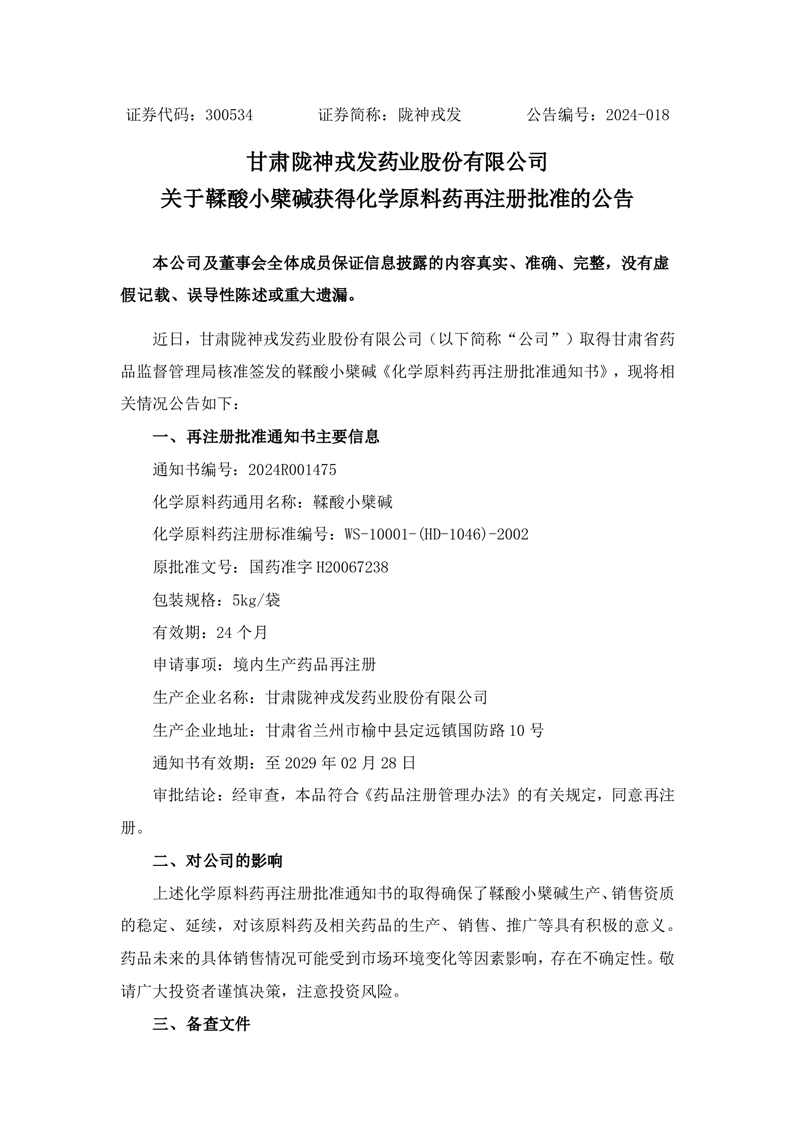關(guān)于鞣酸小檗堿獲得化學(xué)原料藥再注冊批準(zhǔn)的公告