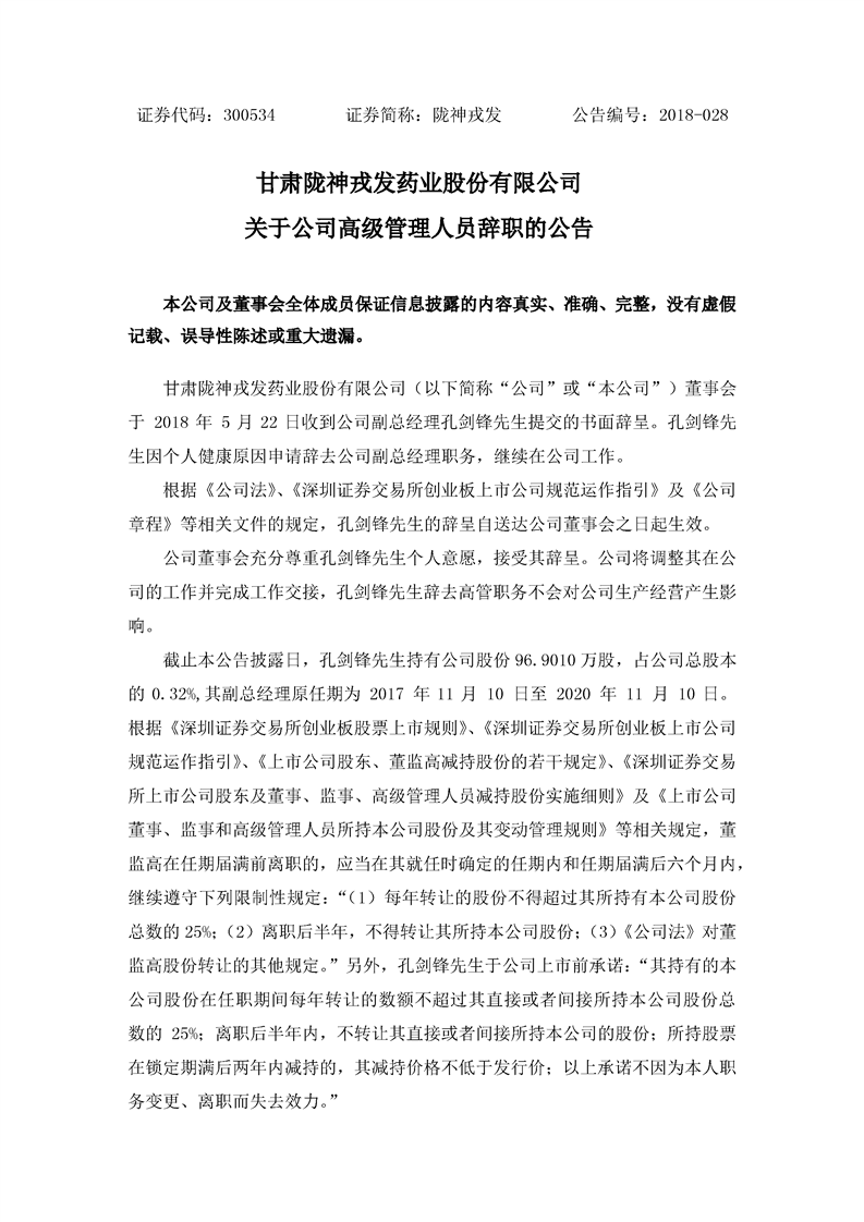 關于公司高級管理人員辭職的公告